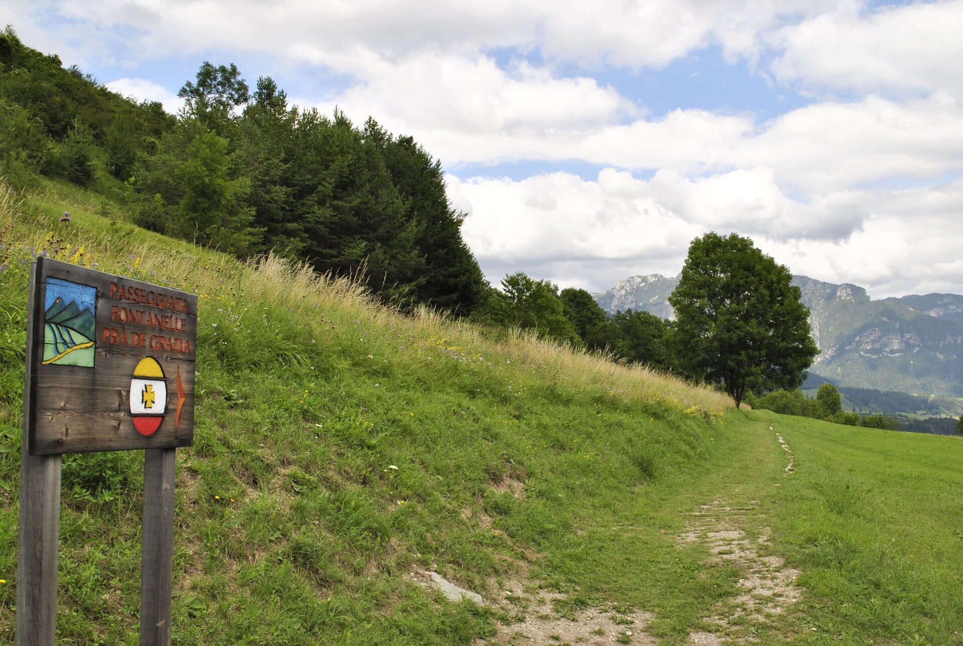 The trail is a circular tour so you can start at any point you want. The narrow streets and paths that you follow allows you to immerse yourself in the silence of nature as you move around the Dosso Veronza.