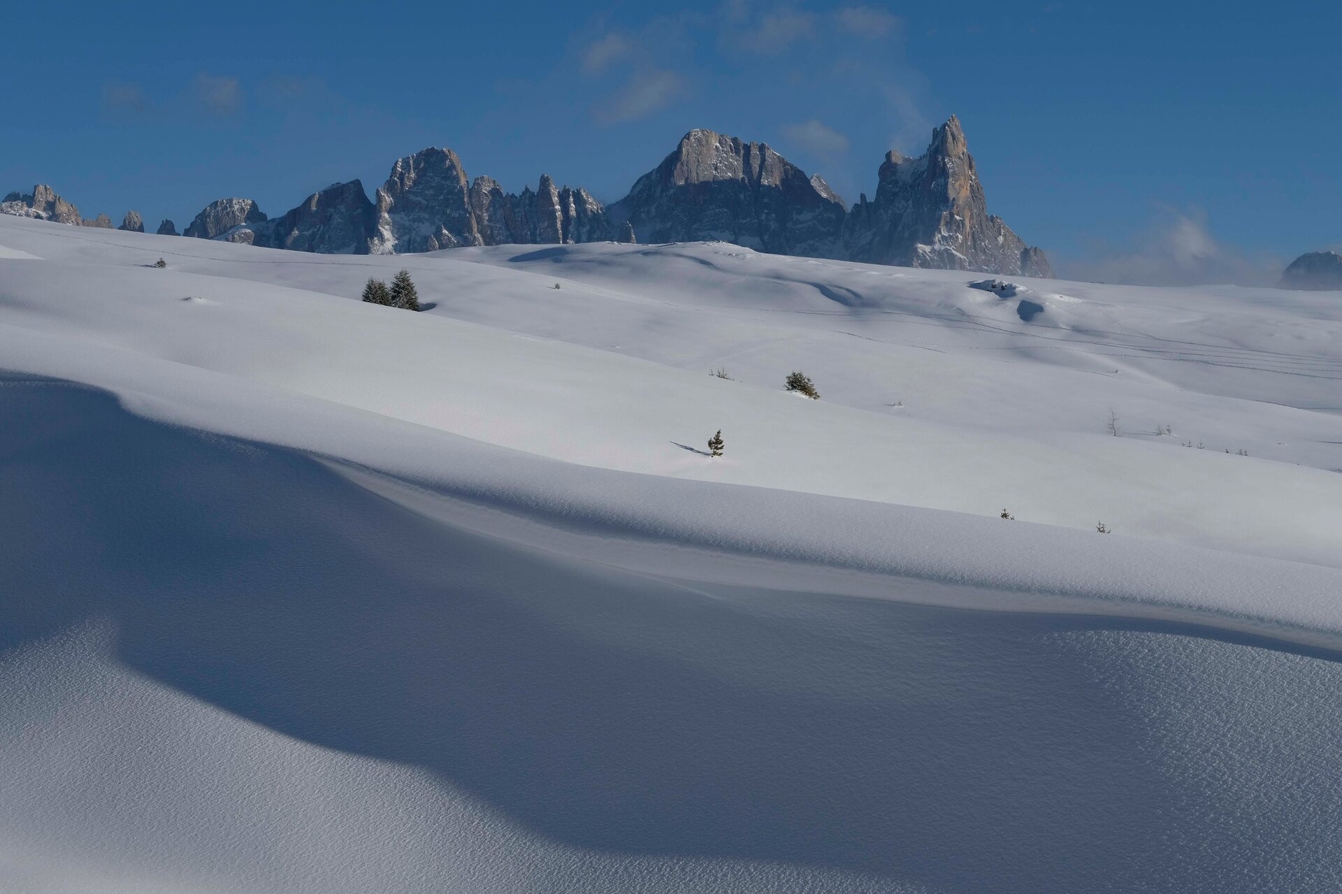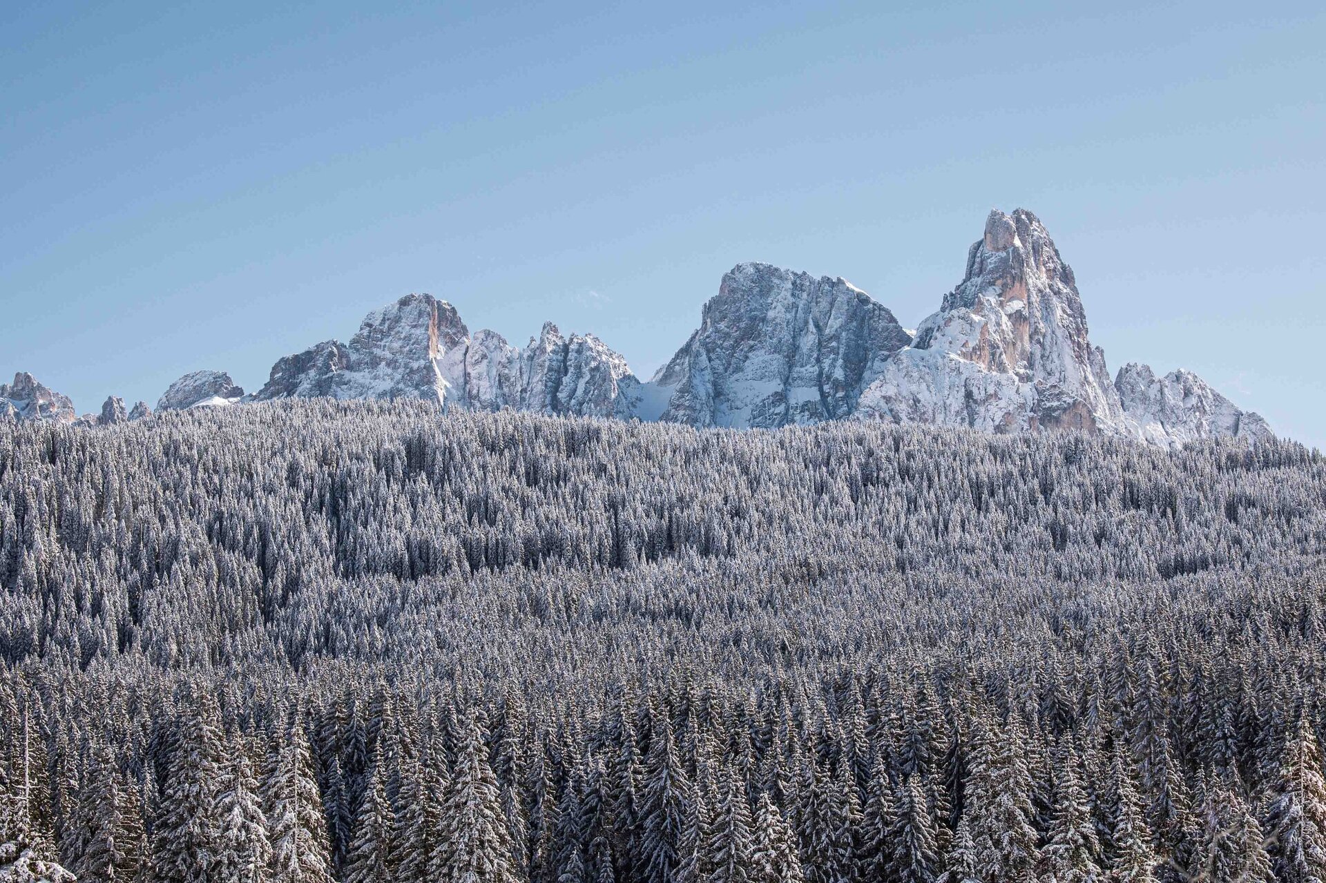 The uphill path, kissed by the sun, is moderately challenging, but the arrival point and the surrounding environment will be the precious reward for the effort. Once you have taken via di Seradori, the signs lead to the locality of Larcionè, dear to the inhabitants of Bellamonte for its barns and the memories of a rural life not too far back in the years. Little by little the spaces widen, the wood gives way to the wide expanses of meadows covered with snow. Here silence is music that slowly changes note and turns into hum. It is the metallic noise of the lifts, interspersed with the energetic rustle of the skiers' changes of direction.
