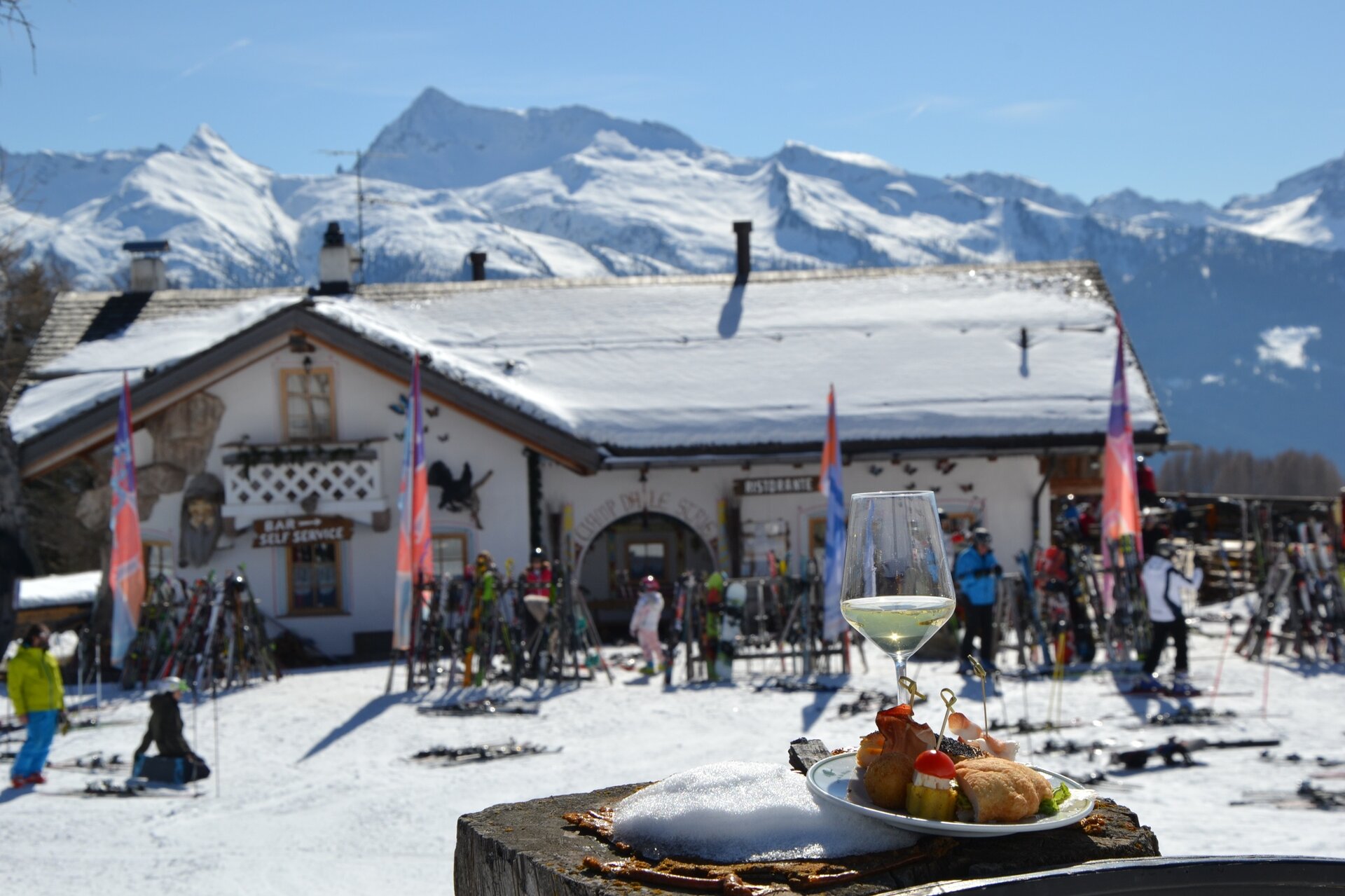 You can reach the Baita Ciamp dele Strie for lunch or a snack. Be careful when crossing the slope.