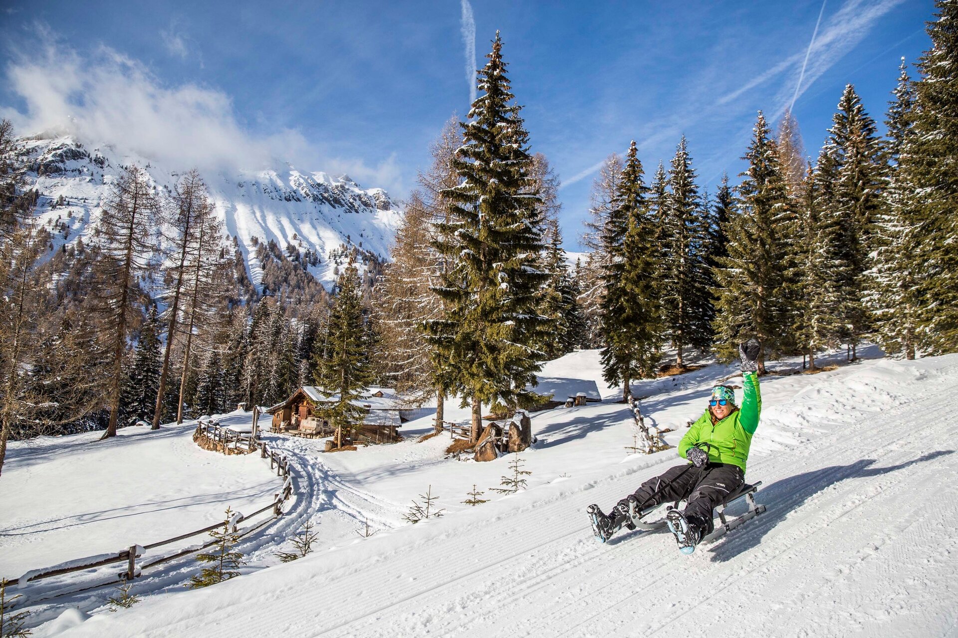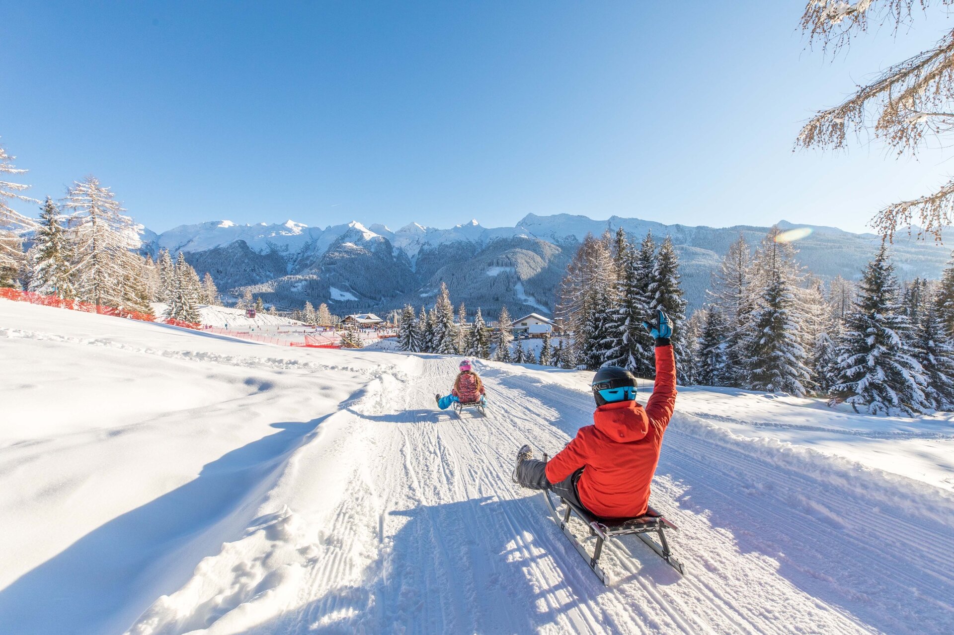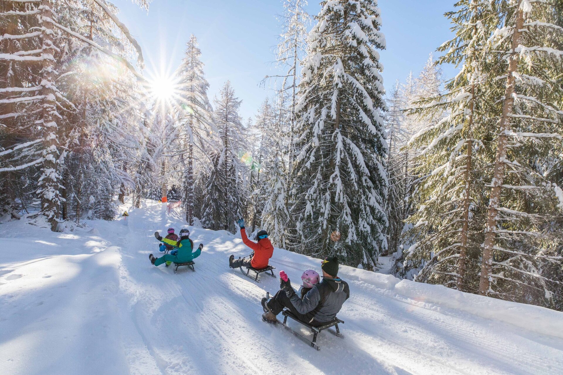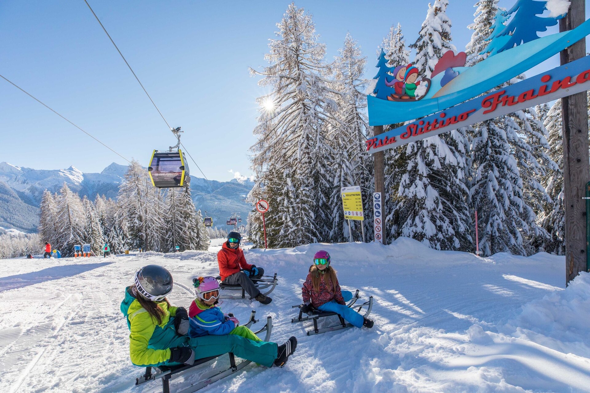 Bring your sledge, but first check if it is the standard two-blade sledge. Please remember that you can only use the classic sledge with side blades and reins. If you don’t have one, rent it at Castelir Service under the skipass office.
