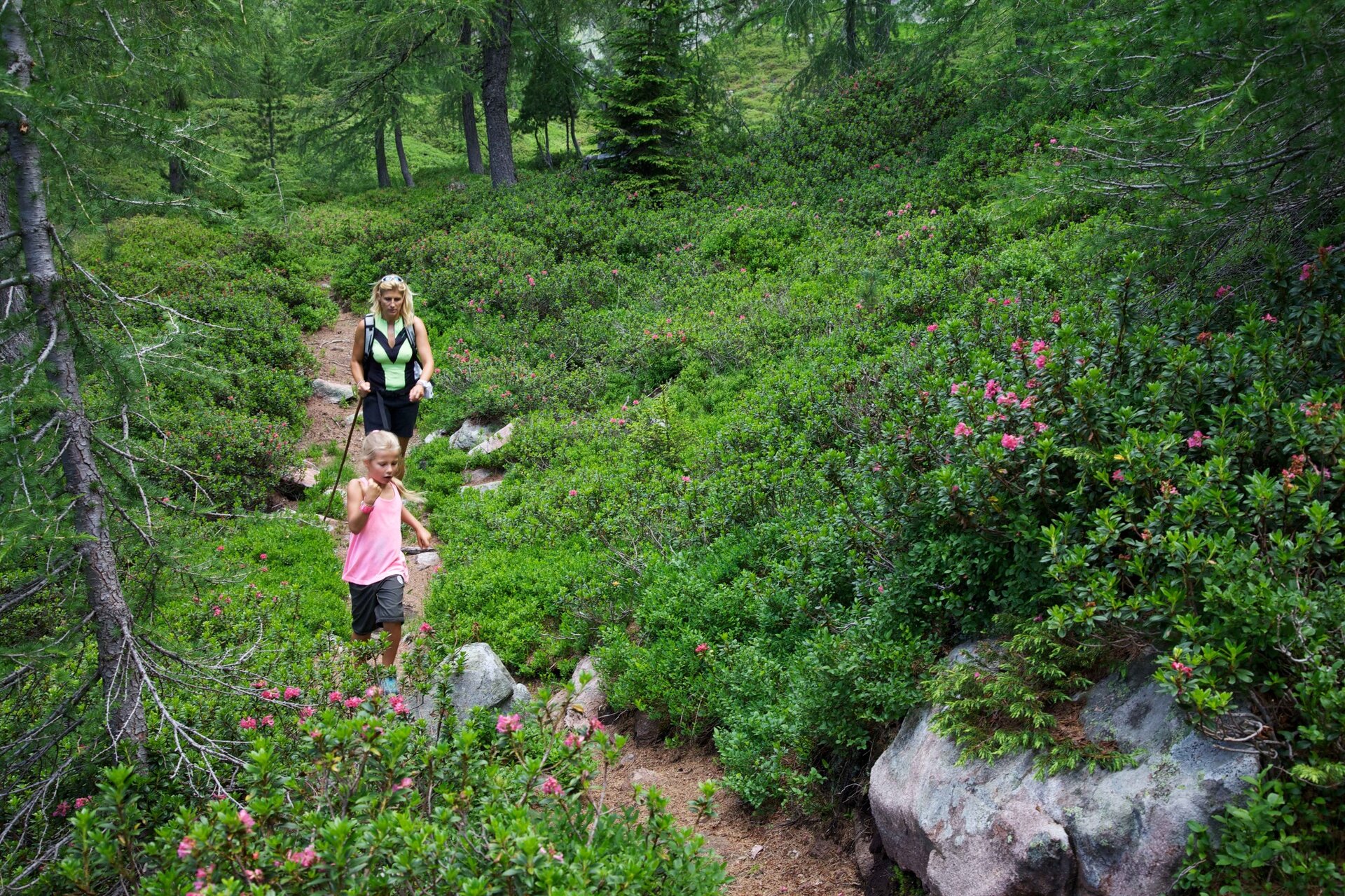 On foot, in about half an hour, you reach "Pradi da le Fior", a mountain pasture that preserves an exceptional view of Val di Fiemme, from the town of Le Ville (Carano, Daiano, Varena) up to Corno Nero and Pala di Santa peaks. Located at 2000 meters, it is an authentic flowered balcony, full of flowers, surrounded by rhododendrons, where everything invites you to a picnic break. You are at the highest point of the itinerary; the walk then proceeds slightly up and down to Malga Coston, the historic Valfloriana pasture, now renovated, dating back to the early 1800s. Finally, the path leads back to Malga Sass.
