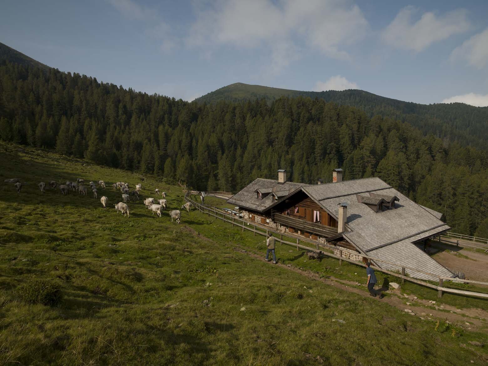 Continue on your left to reach Malga del Coston (1.631 m) and then follow the flat path which leads you back to Malga Sass.
