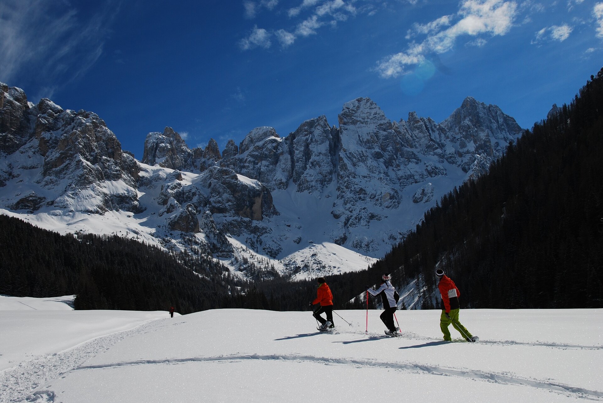 Very popular route, in a truly unique environment. Val Venegia looks like something out of a storybook; the trees covered with snow, the frozen Travignolo stream, the valleys that seem to be made of cotton wool and the view of the imposing rocky spur of Cimon della Pala, also known as the "Matterhorn of the Dolomites".