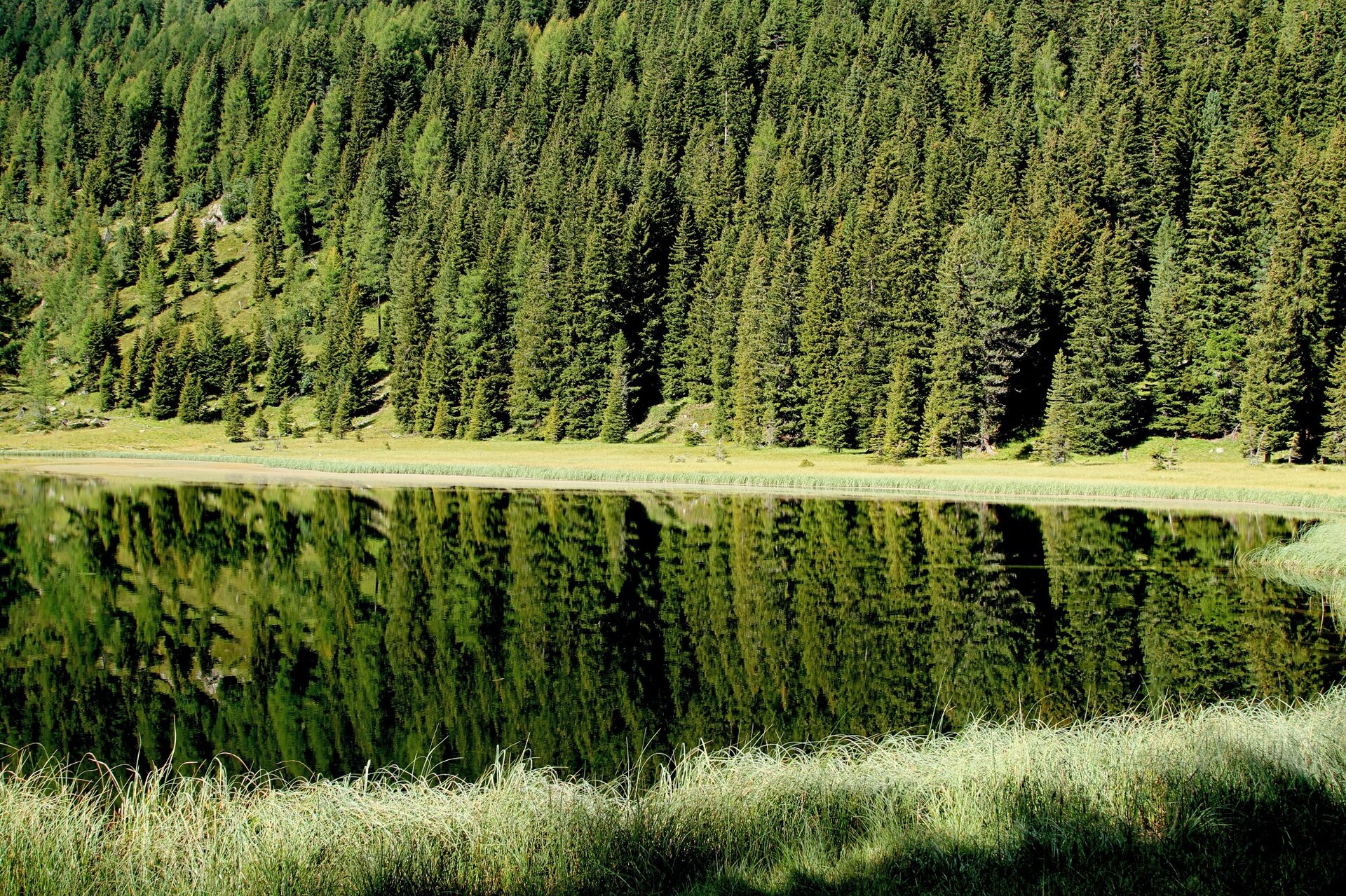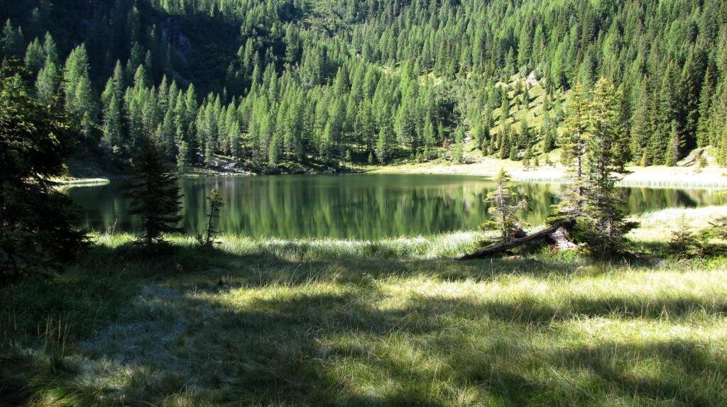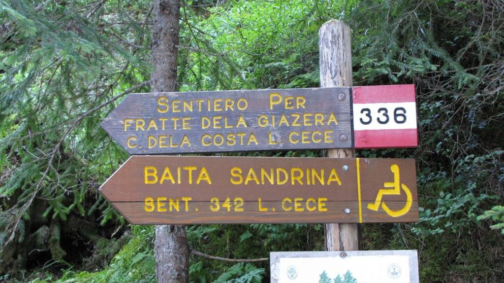 From Ponte (bridge) Valmaggiore (1570m) take path No. 336 which goes into the woods, where the damages of the Vaia storm are visible. The route takes place first on a forest road and then continues on a classic mountain path. After passing a beautiful pasture, continue the walk, until you reach the suggestive Lago di Cece with it's wooden hut.