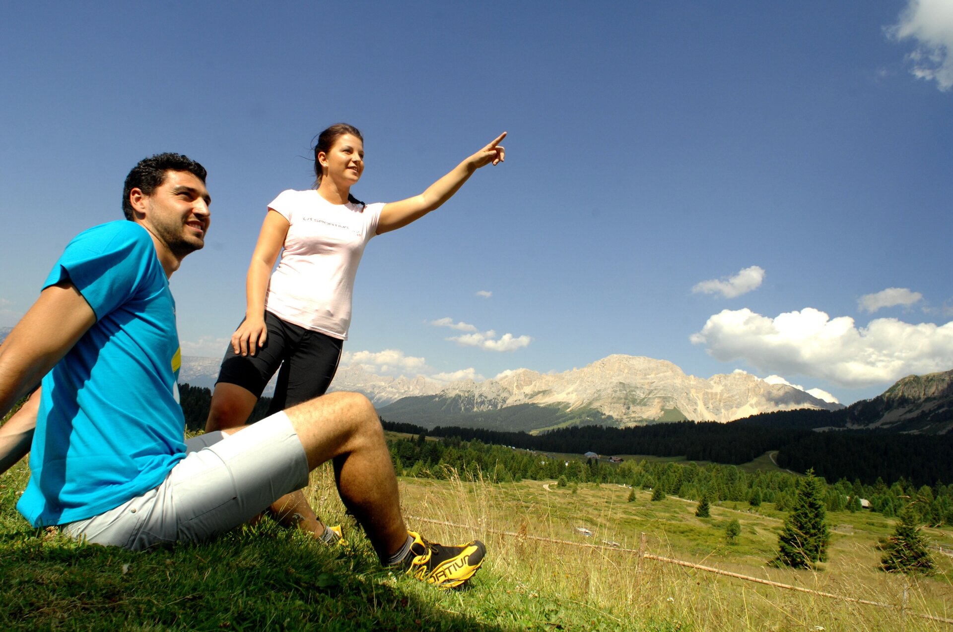 The beauty of this itinerary are the very different scenarios: the airy plateau of Lavazè, the fir and pine forest and then the wide ridge after the edge of the wood. You reach the cross on the top of the mountain passing through volcanic rocks and steep pastures where you will occasionally find a flock of sheep. After the descent on the ski slopes to Passo Pampeago, we return to the forest road and path marked by the Vaia storm (October 2018).