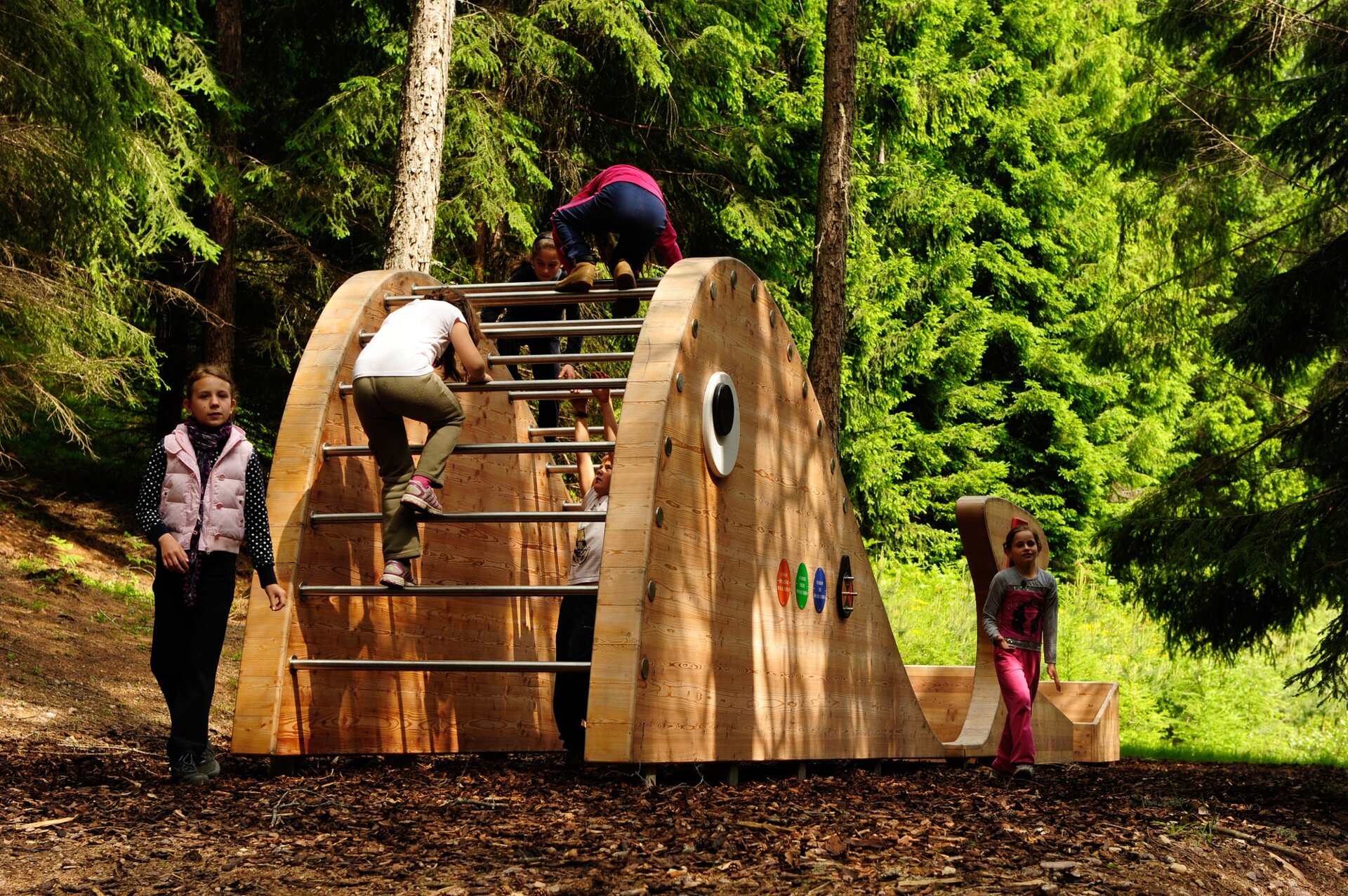 Easy and comfortable itinerary in the woods that reserves some nice surprises: a playground where fairy tale characters guide you to discover the various installations: Peter Pan, Pippi Longstocking, Alice in Wonderland and Pinocchio. In addition, a regenerating Kneipp path, a small but precious health oasis in the woods, with free access.