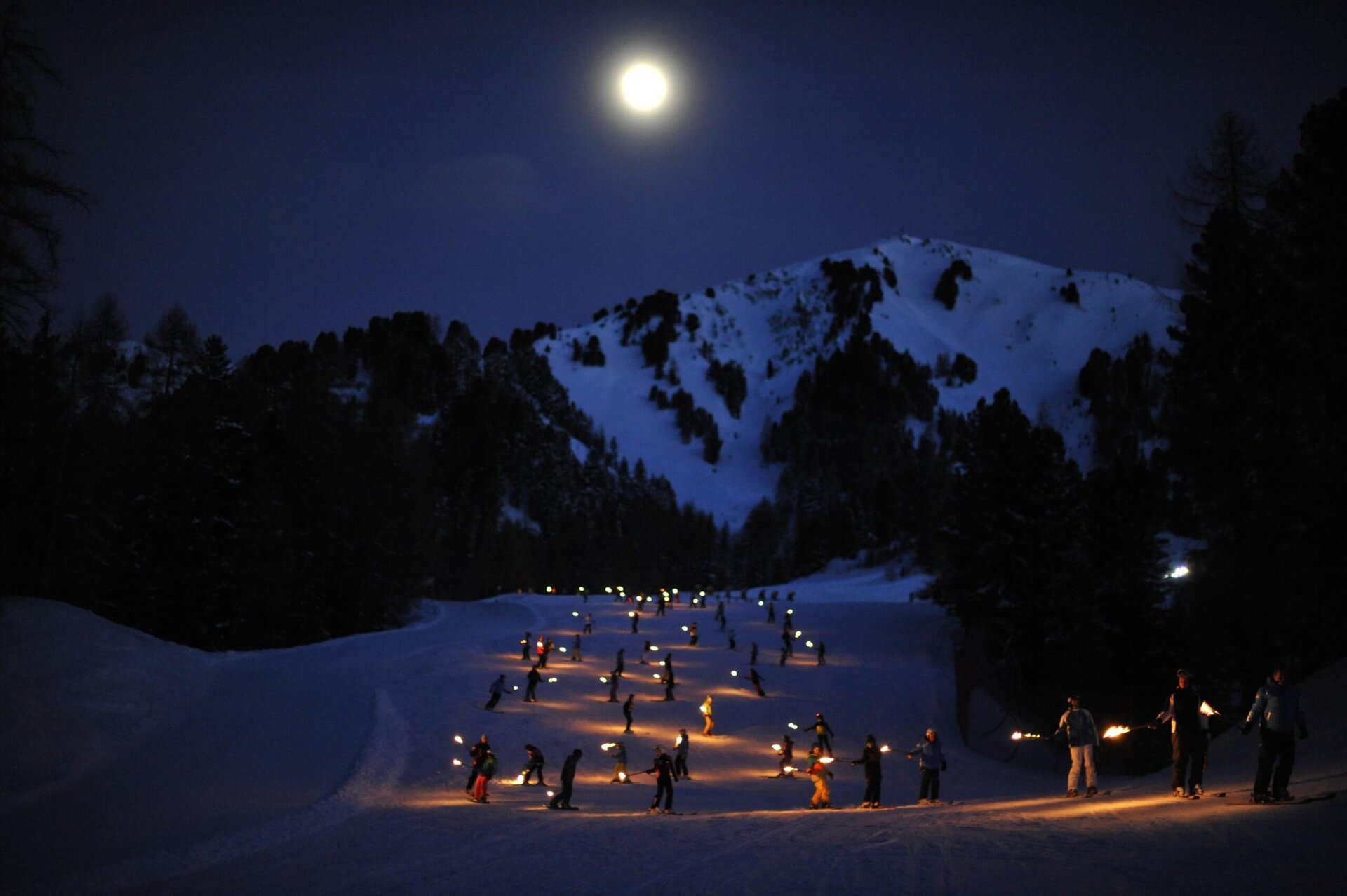 Zažijte vzrušení z sjezdu osvětleného pochodněmi, doprovázeného mistry lyžování ze školy lyžování v Pampeagu, kteří vás poté ohromí spektakulárním Demo Show, akrobaciemi freestylerů, plameny ohnivců a překvapivým závěrem!