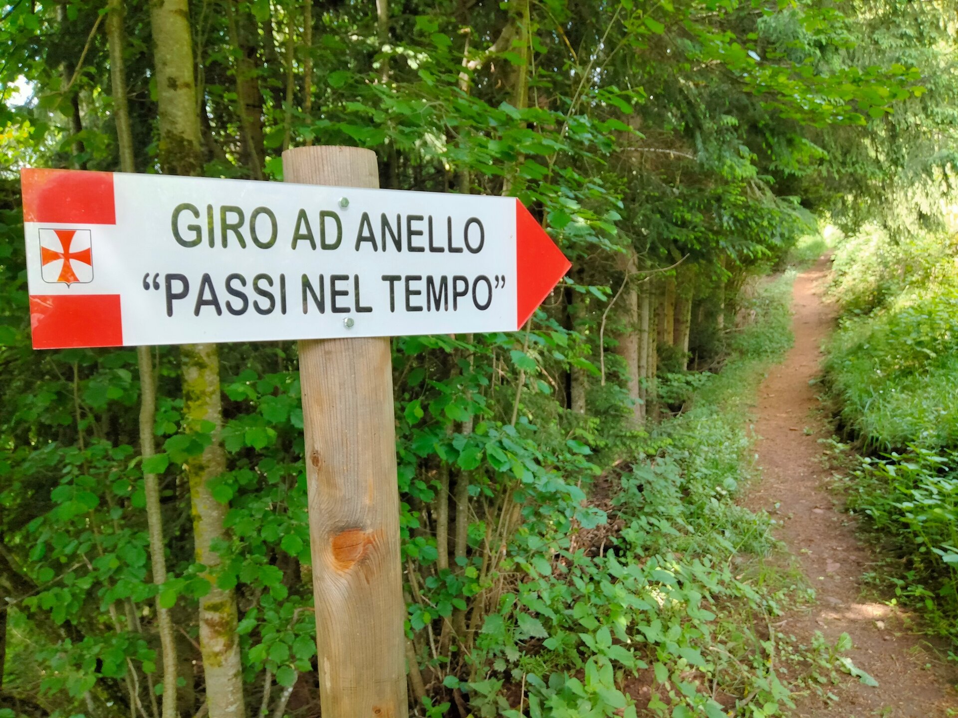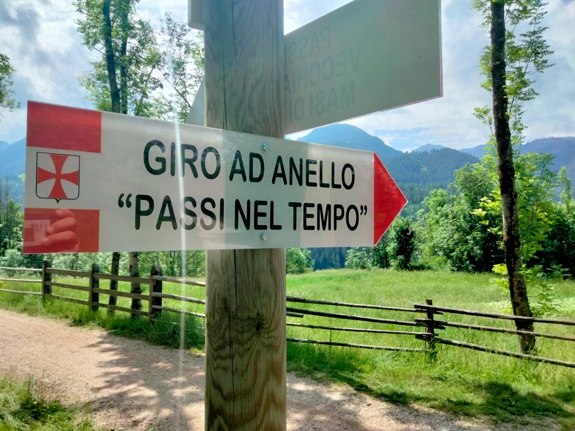 Die Rundroute "Schritte in der Zeit" beginnt hinter dem Hügel nahe der Bar und den Tennisplätzen im Parco della Pieve. Der absteigende Pfad kreuzt nach wenigen Metern die Straße, auf der einst die Val di Fiemme Eisenbahn verlief. Man folgt dem Schotterweg und gelangt bald zur Weggabelung, um den Turm von San Valerio zu erklimmen. Nachdem man die Aussicht bewundert hat, geht es einen mit Porphyr gepflasterten Weg hinunter bis zur Ortschaft Sottocastello. Von hier biegt man rechts ab und taucht in eine Wiese ein, bis man zu einer überhängenden Plattform mit Blick ins Tal gelangt, von der aus man einen Ausblick auf den "Wasserfall von Cavalese" genießt.