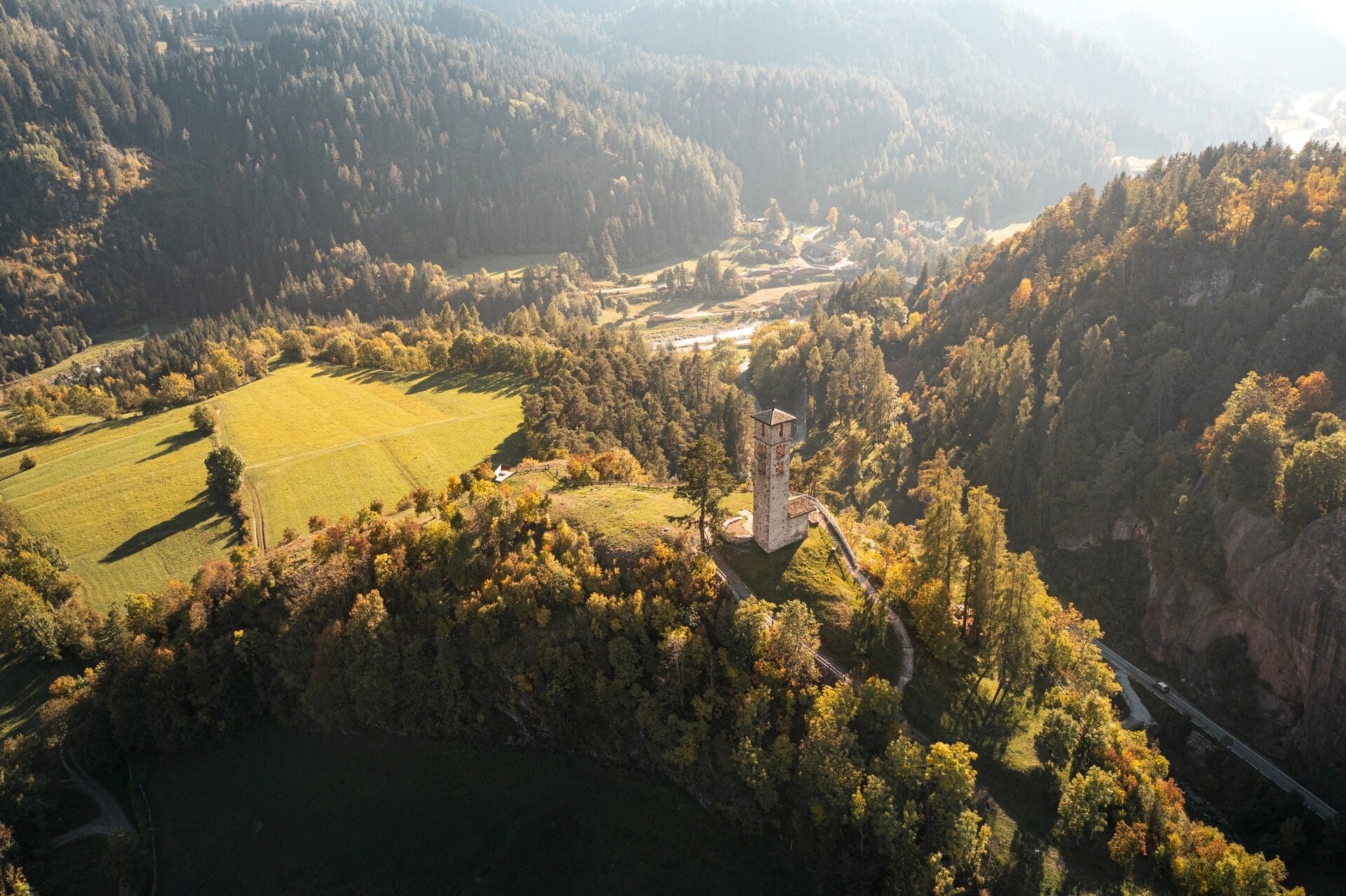 Vom wunderschönen Parco della Pieve, zum Turm von San Valerio und dann über wenig bekannte Pfade südlich von Cavalese.