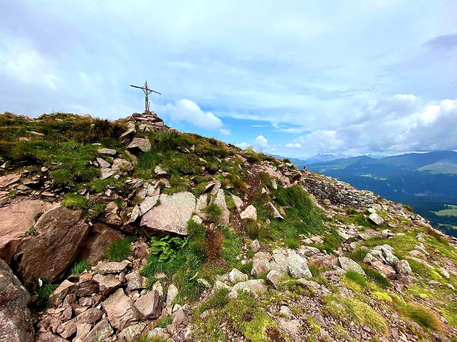 Der Weg setzt sich am Osthang fort und führt in mehreren Serpentinen in eine kleine Senke (hier kann man rechts einen kurzen Abstecher zum kleinen Cavallazza, 2305 m, unternehmen). Man bleibt auf dem linken Pfad und wandert Richtung Nordosten zum Rolle Pass. Bald erreicht man eine Kreuzung, wo man links abbiegt. Der schlecht sichtbare Pfad (auf die Hinweisschilder achten) führt unter dem Sessellift hindurch und mündet in eine Skipiste, die nun zum Wanderweg wird und zum Rolle Pass führt.