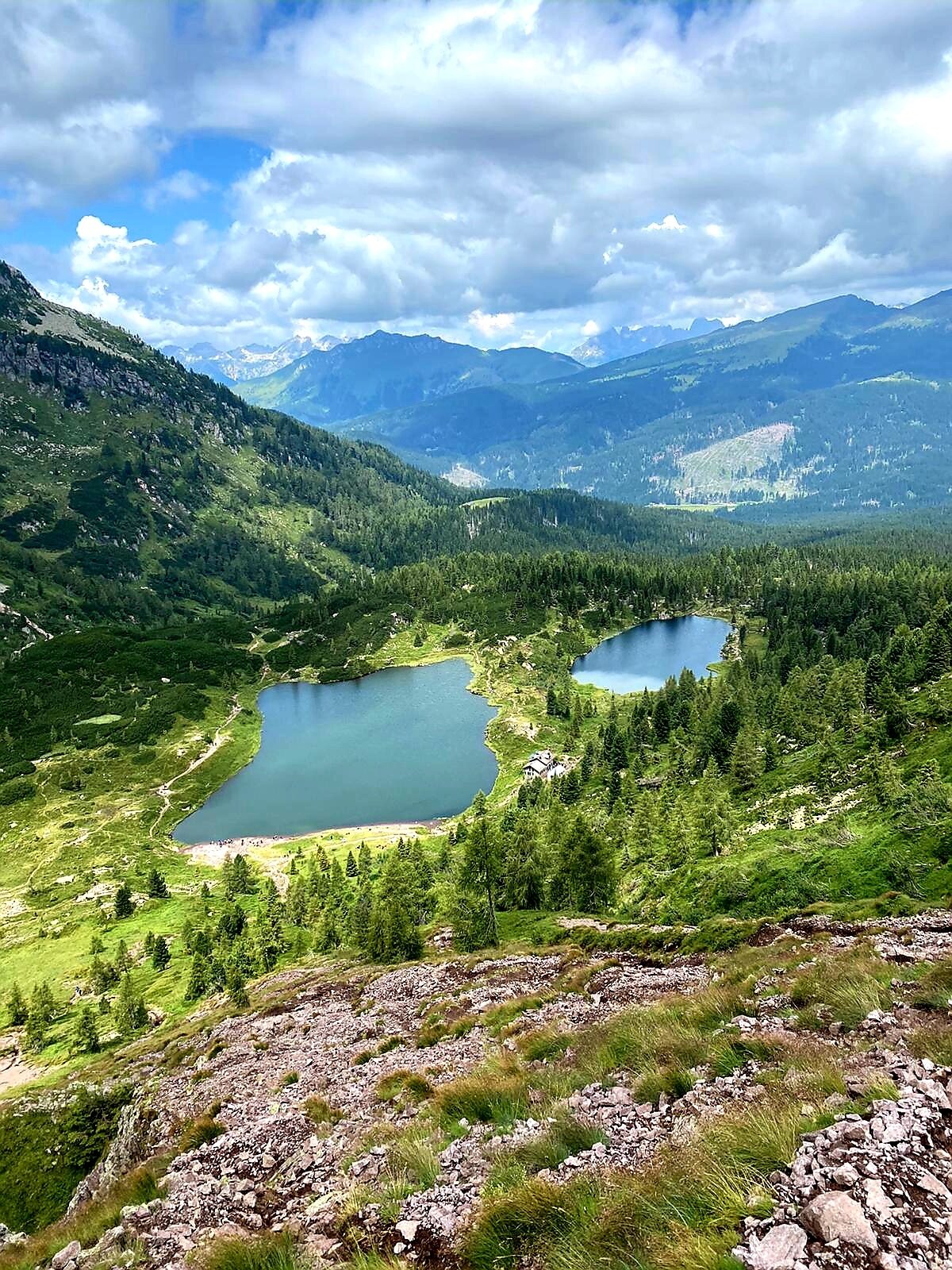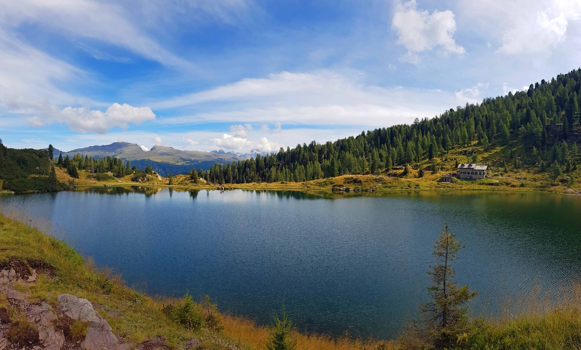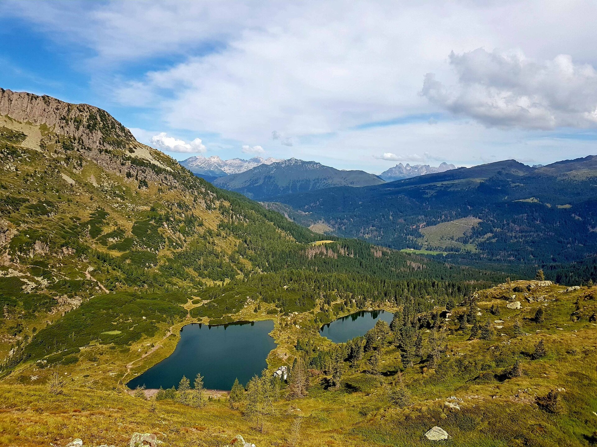 Vom Parkplatz nahe der Sennalm Malga Rolle (1900 m) quert man die Straße und geht den Schotterweg zur Talstation der Liftanlage “Paradiso”. Rechts, auf Pfad Nr. 348, der durch einen lichten Lärchenwald führt, erreicht man in ca. 1 Stunde die schönen Seen (1927 m). Nach der Schutzhütte, geht man ein kurzes Stück das Seeufer entlang. Dann zweigt der Weg nach links ab und steigt steil über den Westgrat zum Cavallazza auf. Man erreicht eine Hochebene, über die man zum Gipfel (2293 m) gelangt. Die Aussicht auf den darunterliegenden Cavalazza-See und die Dolomitenberge ist eine Augenweide.