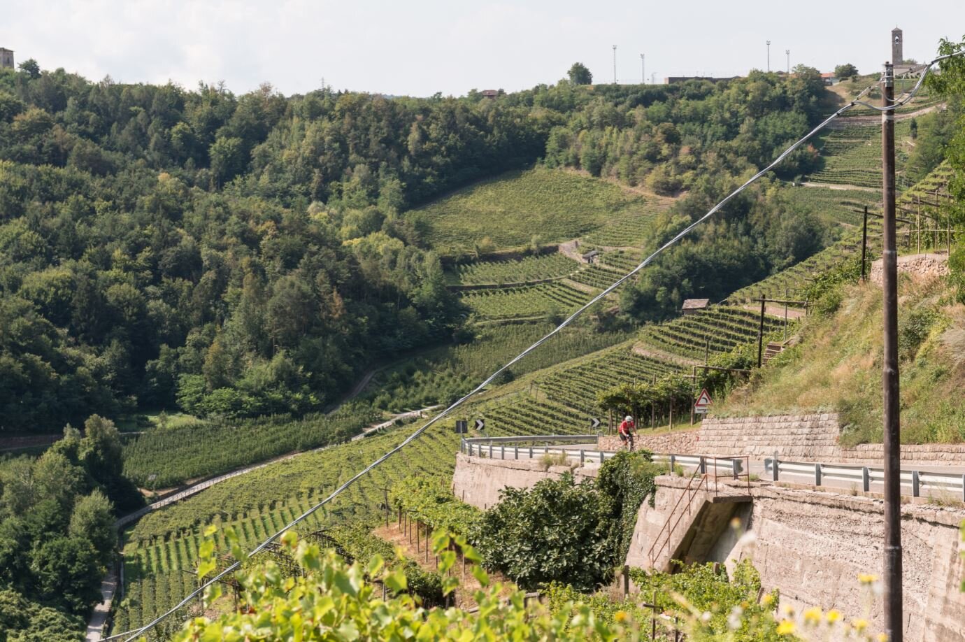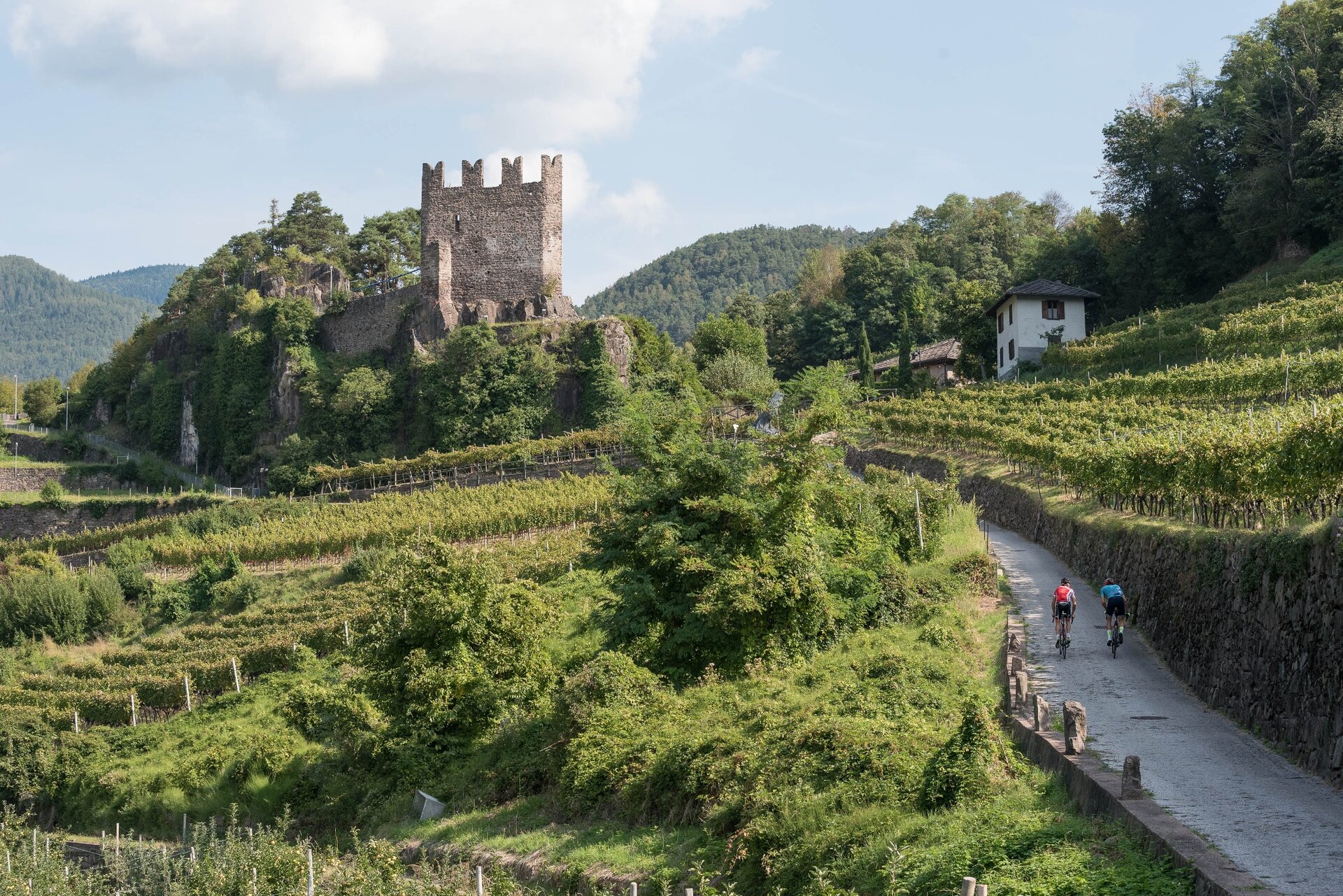 Rundweg, um das Cembra-Tal in all seinen Charakteristiken zu entdecken: die typische Morphologie, geprägt vom reißenden Fluss Avisio, die Weinberge, getragen von endlosen Trockenmauern, die kleinen bäuerlichen Dörfer, die an den Berghängen kleben, und die Porphyrsteinbrüche mit ihrem dunkelroten Farbton, mit dem Straßen und Häuser gepflastert sind.