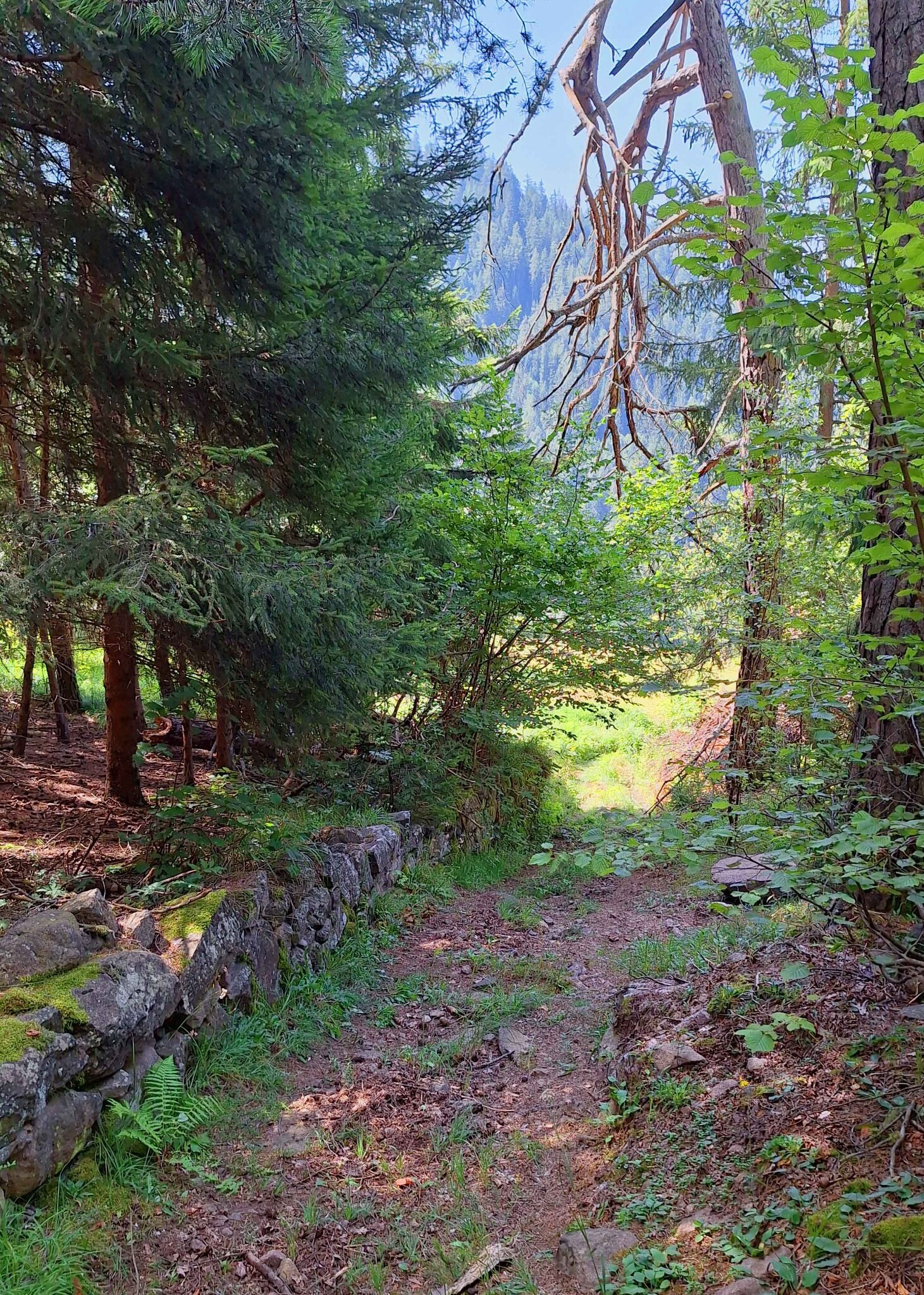 Nur wenige Schritte von Dorà, einem kleinen Ortsteil der Gemeinde Valfloriana, taucht man in einen dichten Wald ein, der hauptsächlich aus Rotfichten besteht und einen typischen Waldboden dieser Nadelwälder aufweist. Stellenweise wechseln sich Fichtennadelbedeckte Abschnitte mit feuchteren, moosbedeckten Gebieten ab. Hier und da gibt es viele Heidelbeersträucher. In der richtigen Jahreszeit kann man auch Pilze finden, deren Sammeln von einem Tages- oder Mehrtages-Erlaubnisschein abhängig ist. Sobald man den Wald verlässt, öffnet sich der Blick auf das grüne Val di Cembra, eine Gegend mit Weinbergen, alten Fabriken, Naturpfaden und atemberaubenden Aussichten.