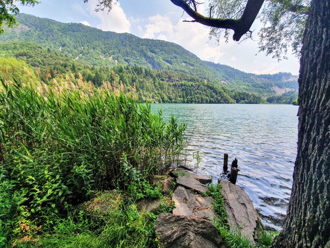 Unsere Strecke beschränkt sich nicht auf das Umrunden des Sees, sondern führt uns zu einem faszinierenden und kuriosen Ort: dem Val Fredda, einem Tal, das seinen Namen der Anwesenheit vieler „Eislöcher“ (buse del giaz) im Talboden verdankt, die ein Mikroklima erzeugen, das dem in Hochgebirgsregionen sehr ähnlich ist, sogar im Hochsommer. Das Phänomen wird durch große Luftzirkulationen innerhalb einer großen Ansammlung von natürlichen Geröllen an den Hängen des Berges verursacht. Durch diese Bewegung kühlt die Luft ab und entweicht an der Basis großer und kleiner Löcher, in denen das Eis das ganze Jahr über erhalten bleiben kann. Nicht umsonst wurden die buse del giaz bis kurz nach dem Zweiten Weltkrieg als natürliche Kühlschränke genutzt.