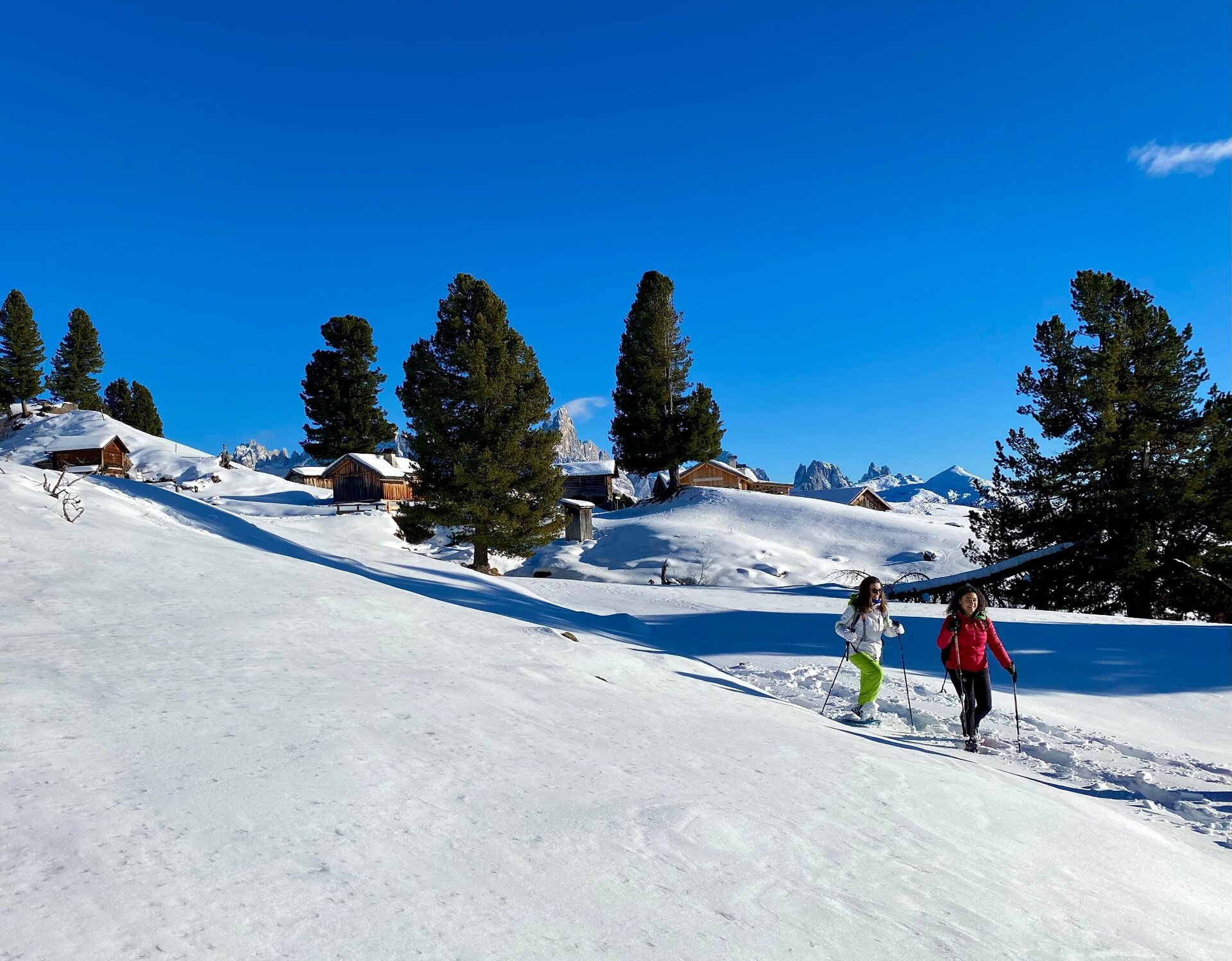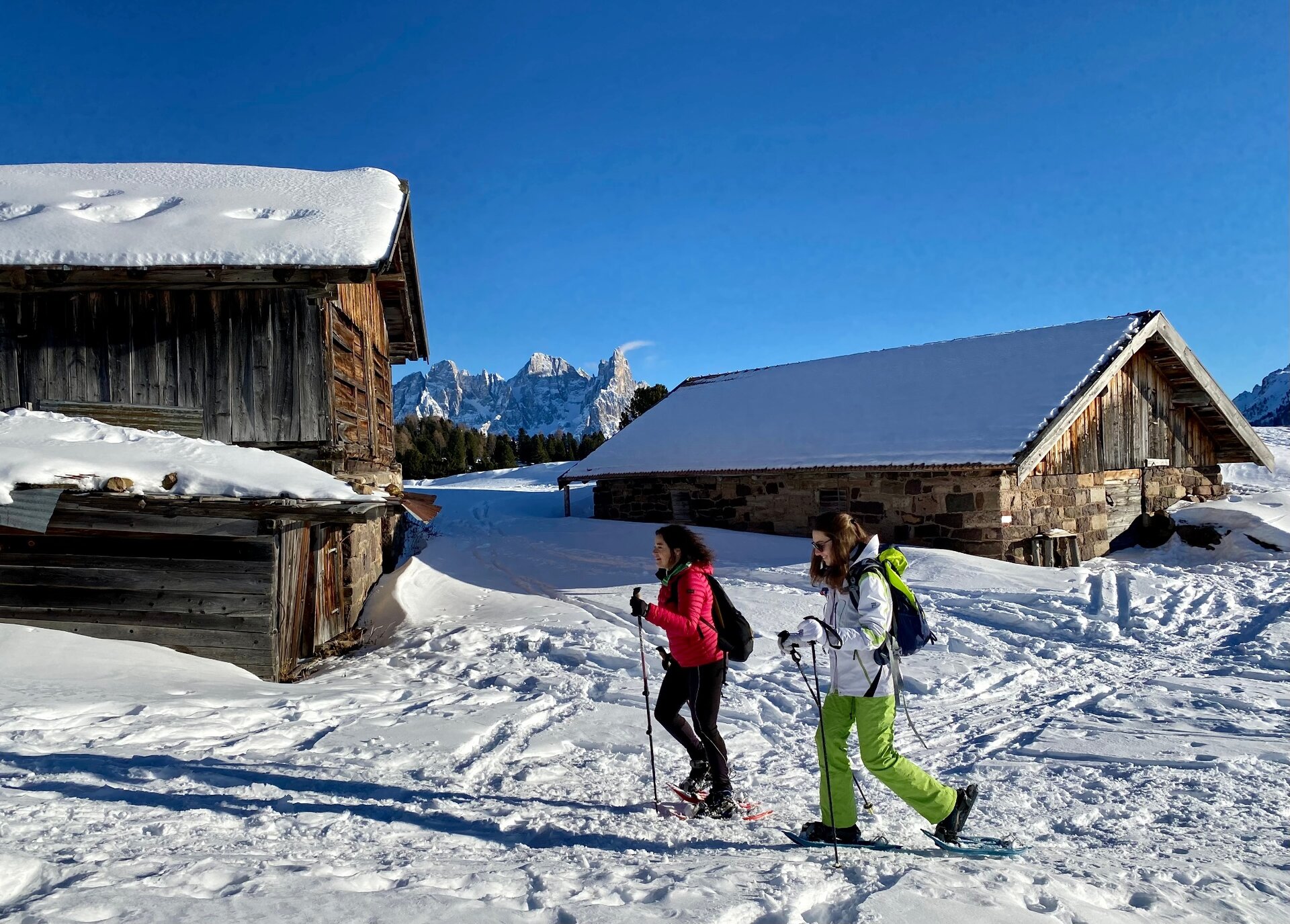 Für diejenigen, die noch Zeit und Energie haben, empfehlen wir, den Weg bis zur Malga Bocche zu verlängern. Von Canvere geht es rechts weiter auf der gut erkennbaren verschneiten Forststraße bis zur Alm (im Winter geschlossen), die auf einem kleinen panoramischen Hügel liegt. Die einfache Strecke beträgt 3,4 km (1:15 Stunden).