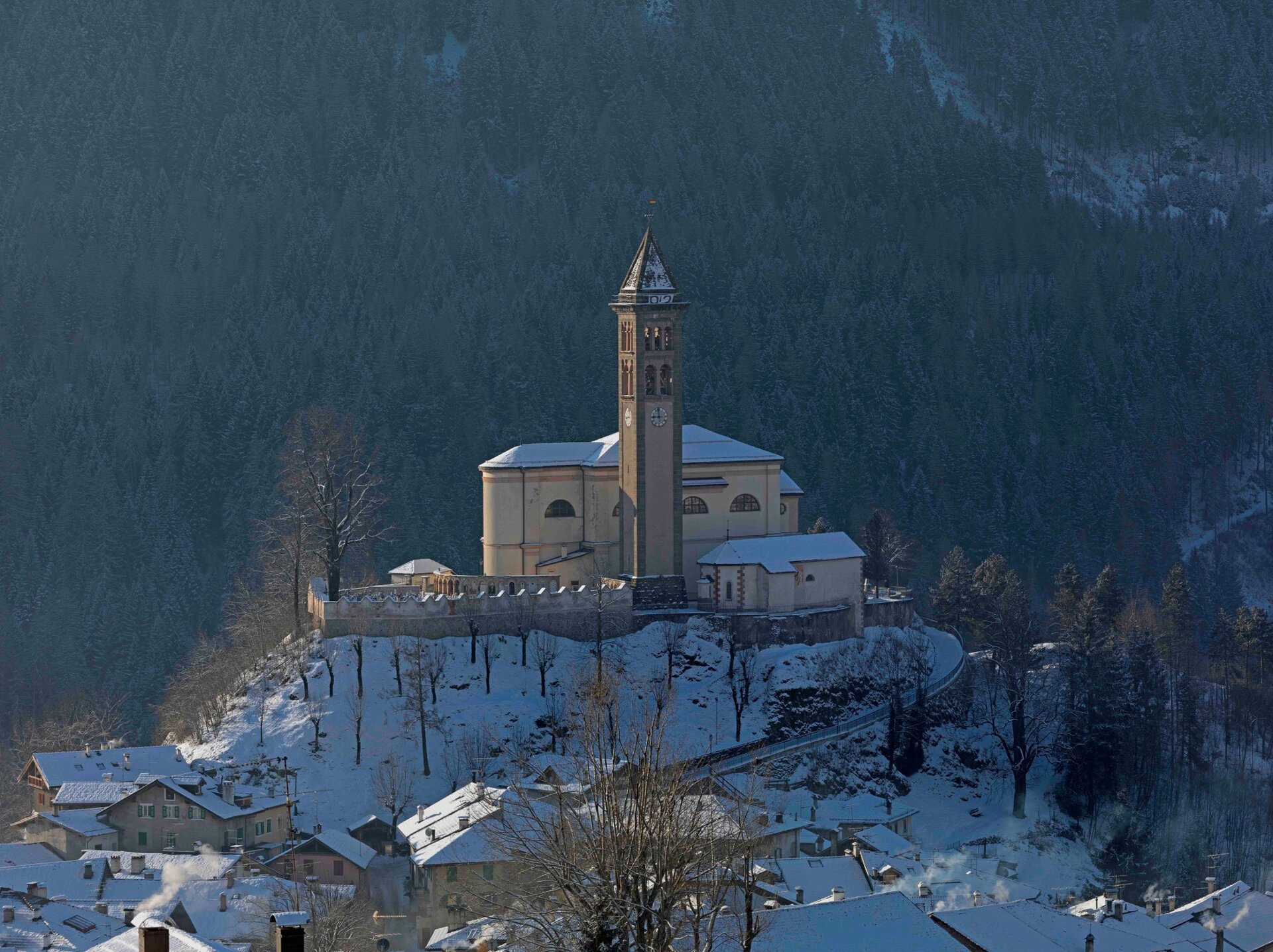 Das Ziel des Spaziergangs ist vom Startpunkt aus sichtbar, in der Nähe des Fußballfelds von Cavalese. Folge dem Bürgersteig in die offensichtliche Richtung und biege an der Kreuzung leicht bergab links auf die Straße ab, die zu einer kleinen Brücke führt. Danach wird der Weg schmaler und steigt sanft durch die Wiesen an. Du gehst weiter und erreichst die ersten Häuser des Dorfes Castello di Fiemme. Beim Erreichen des Hotels Los Andes nimm die Via Fiemme links, die zur Via Roma führt. Von dort aus nimm die Via Salita alla Parrocchia links, die mit einem kurzen, aber steilen Anstieg zu den zwei Kirchen führt. Von diesem natürlichen Balkon hast du einen Blick über mehrere Dörfer des Val di Fiemme und die umliegenden Berge.