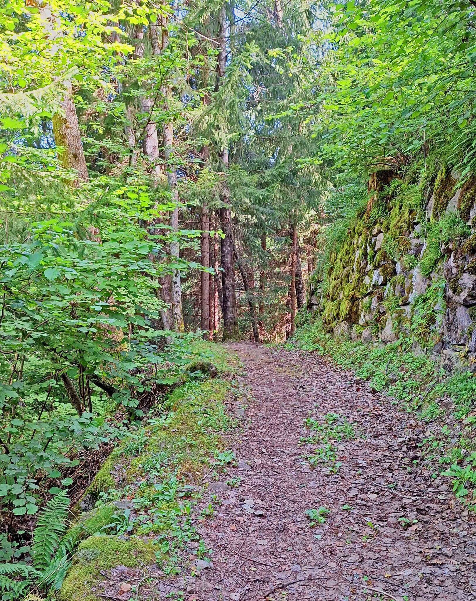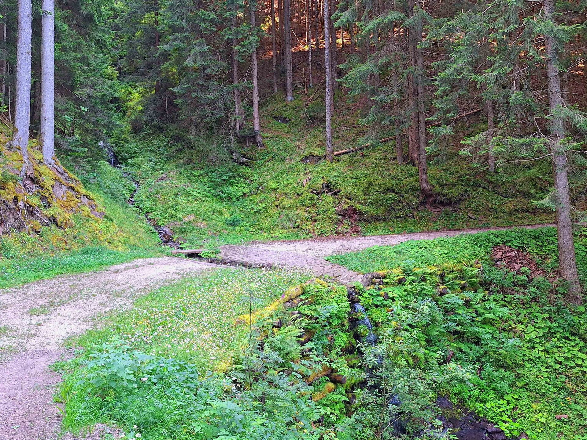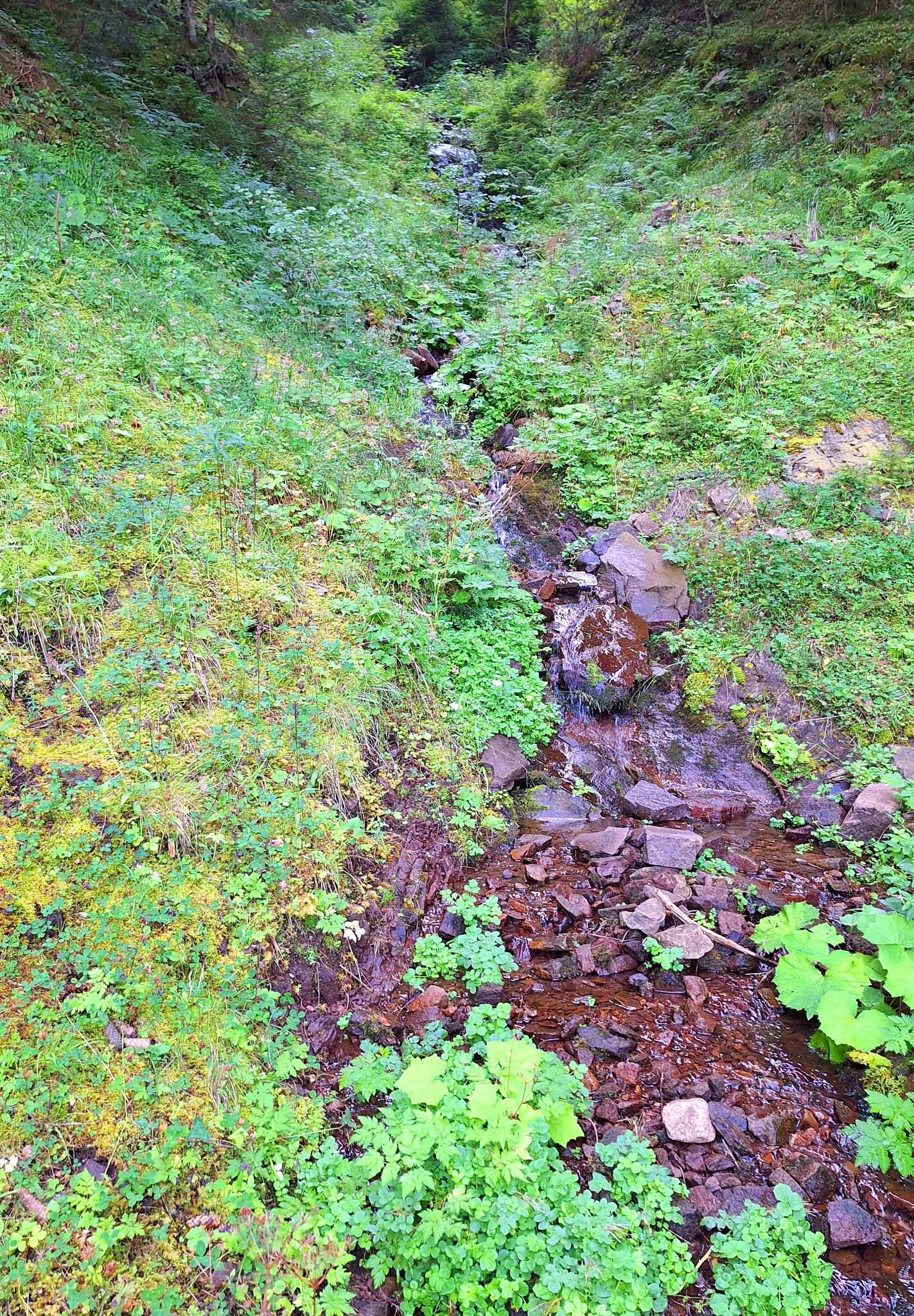 Am Wendepunkt angekommen, führen nur noch wenige Schritte zu einem kleinen Bach. Lass dir Zeit, seine Frische zu genießen.