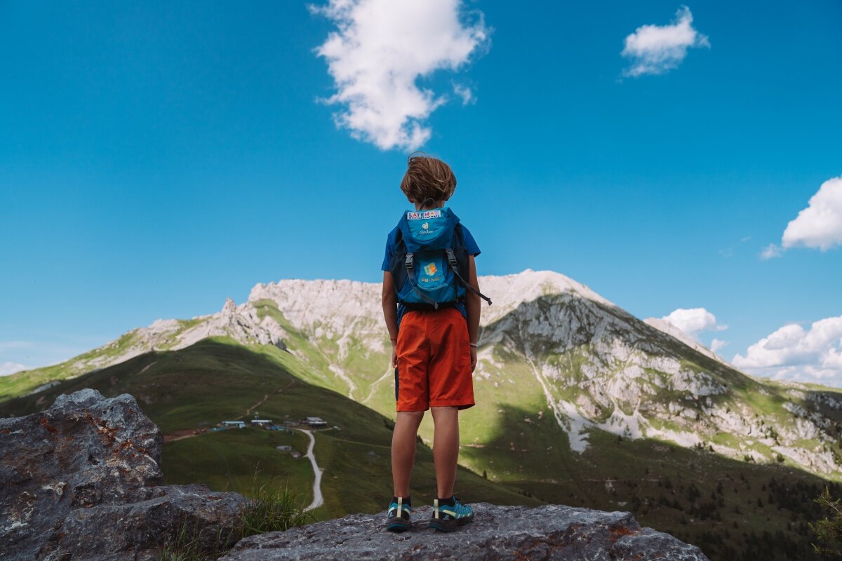 Der Weg liegt im Freien, mitten in den Bergen, mit wenigen Schattenbereichen: eine winddichte Jacke, Wanderschuhe, ein Hut und Sonnencreme werden empfohlen.