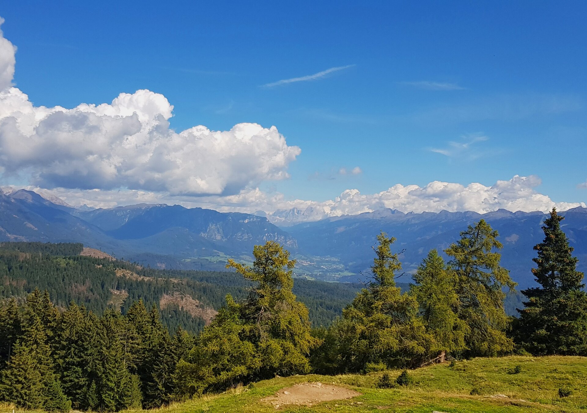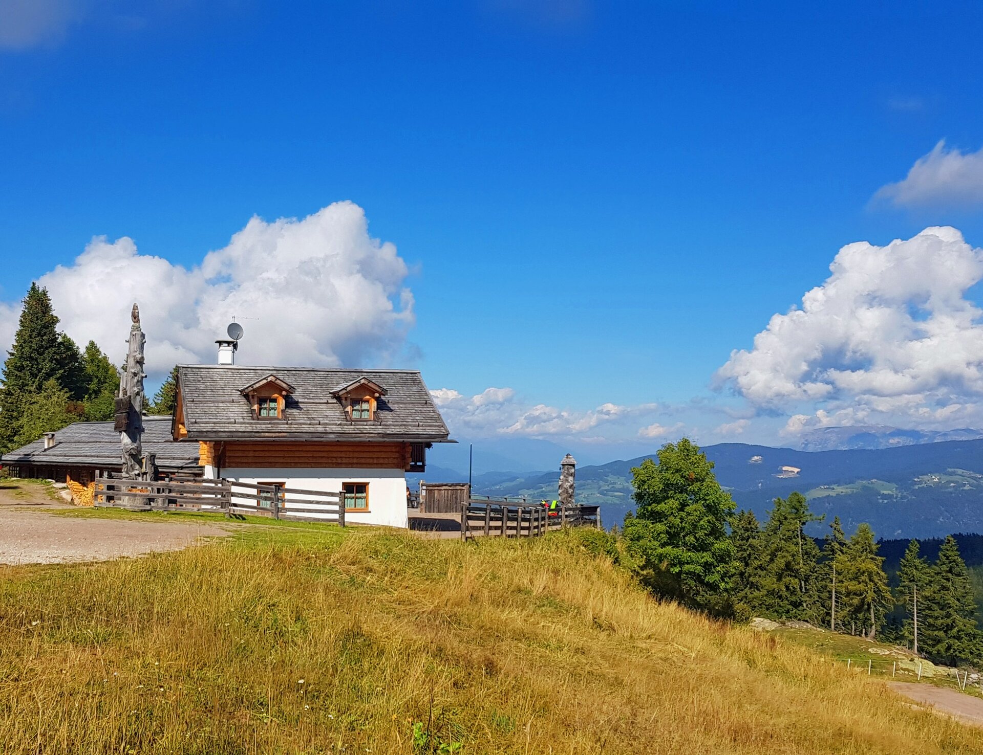 Weiter entlang der Forststraße zwischen Lärchen und Fichten den Markierungen des Weges Nr. 3 zur Malga Monte Corno (Almhütte) folgen, die einen großzügigen Blick über das Val di Fiemme und seine Berge bietet.