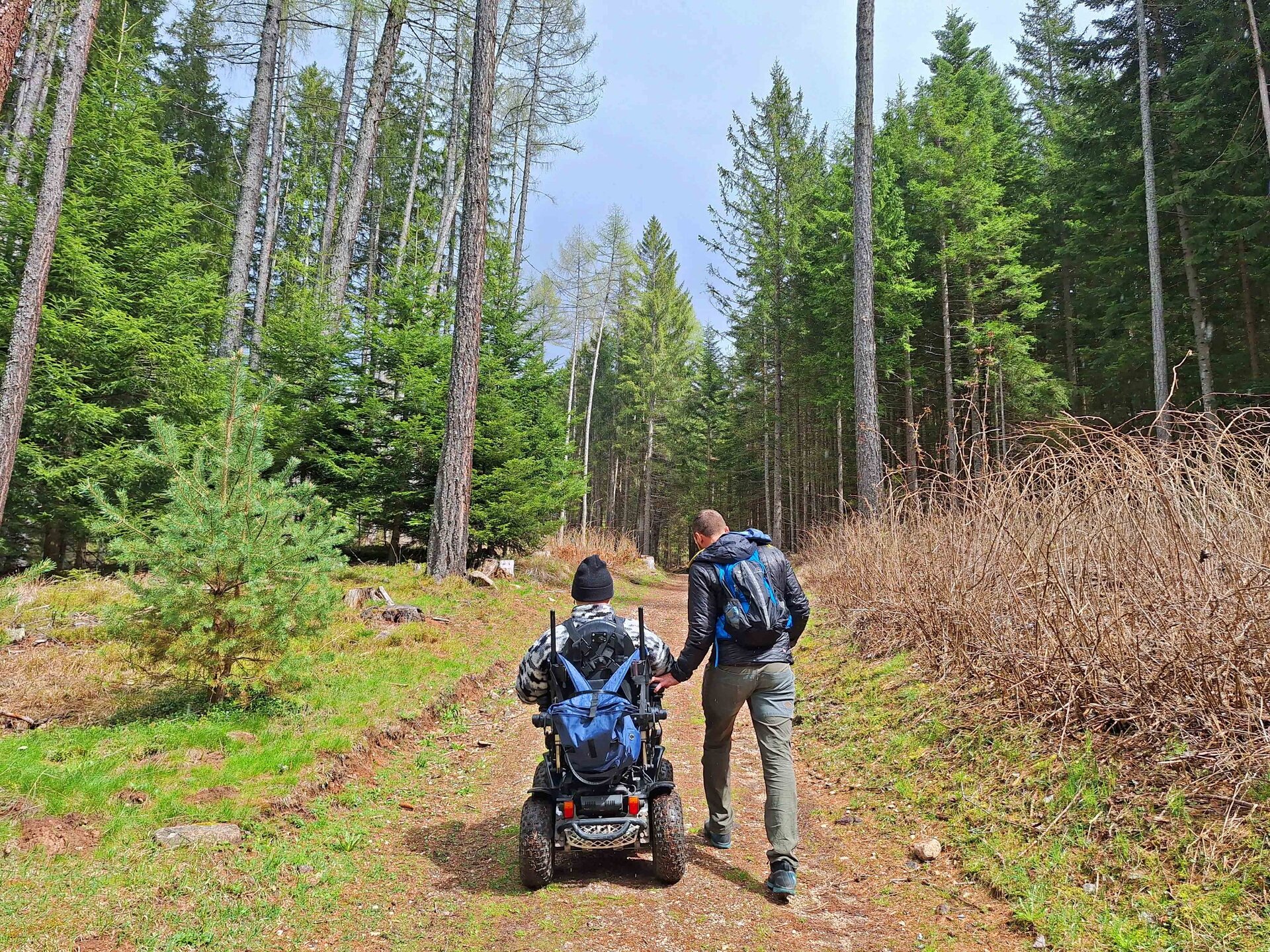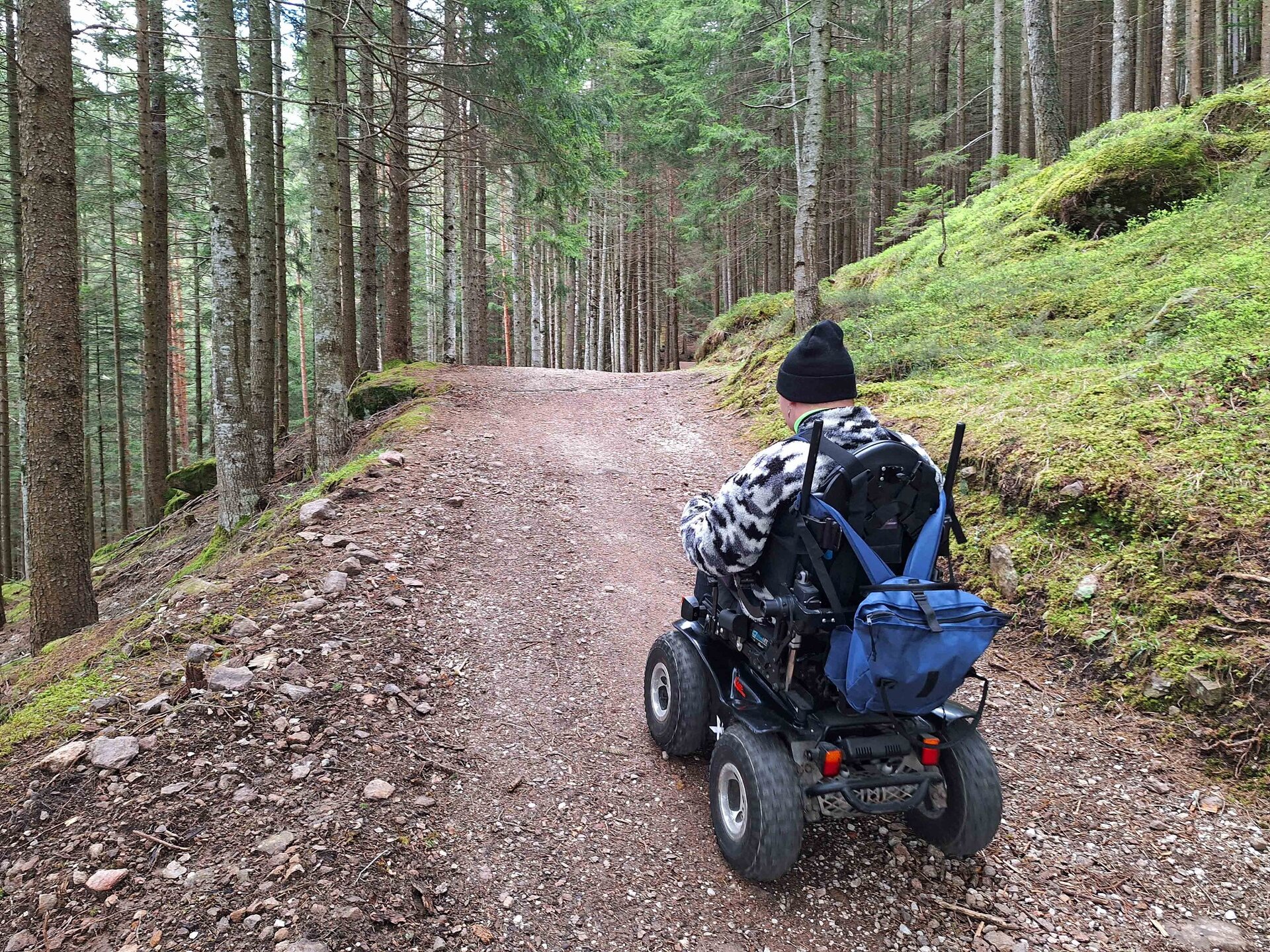 Nur mit 4x4-Rollstuhl. Klicke hier , um den Magic Mobility Extreme zu mieten, einen elektrischen Offroad-Rollstuhl, mit dem du jedes Gelände problemlos und sicher bewältigen und kleine Hindernisse überwinden kannst.
