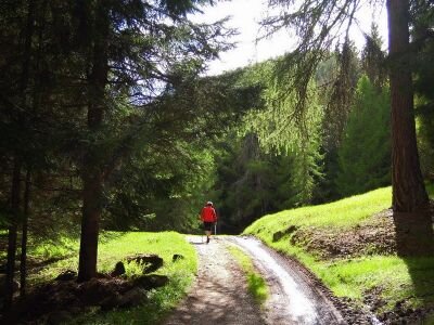 Die Strecke ist kurz und eignet sich für einen Spaziergang. Im Herbst werden die Lärchen golden und verleihen diesen Orten eine besondere Magie.