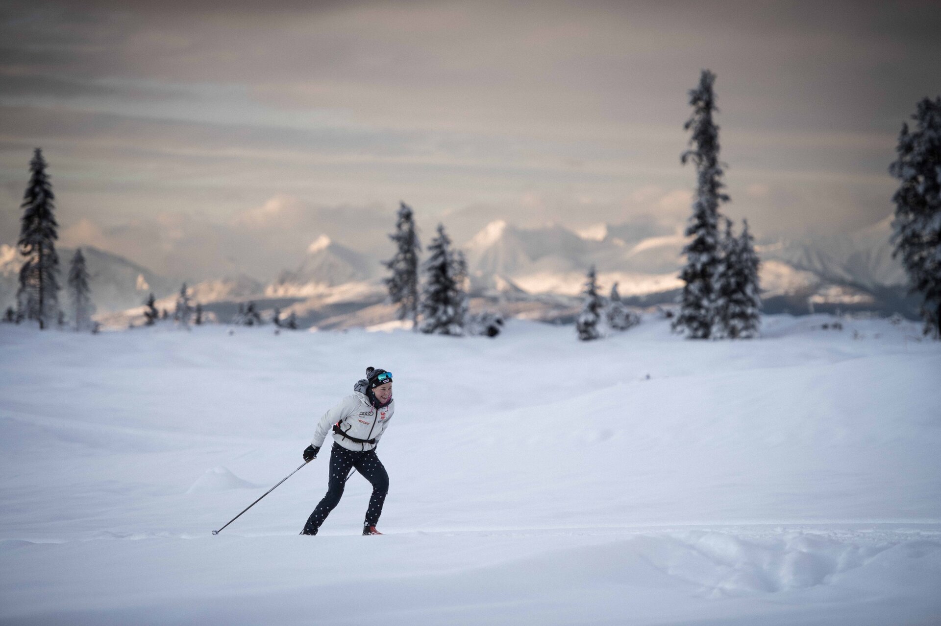 Nach einer Haarnadelkurve erreichst du in etwa 1 km den Eingang des Langlaufzentrums.