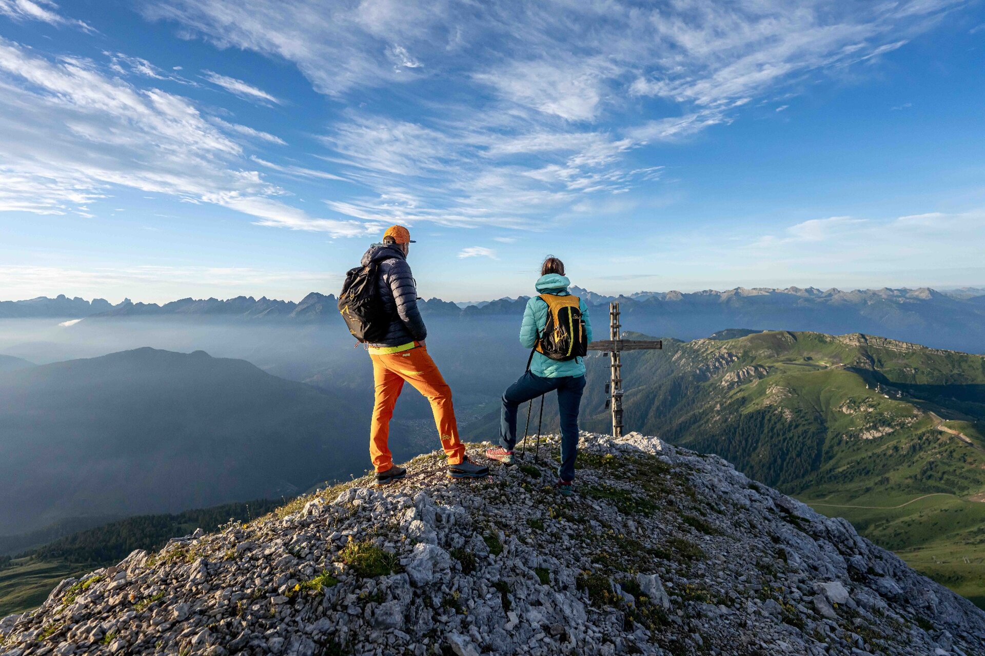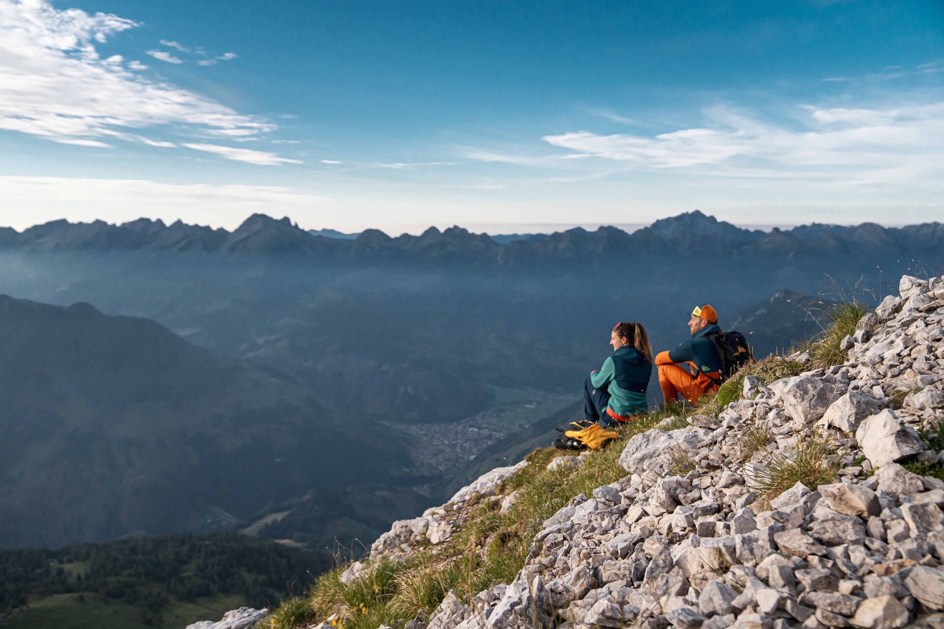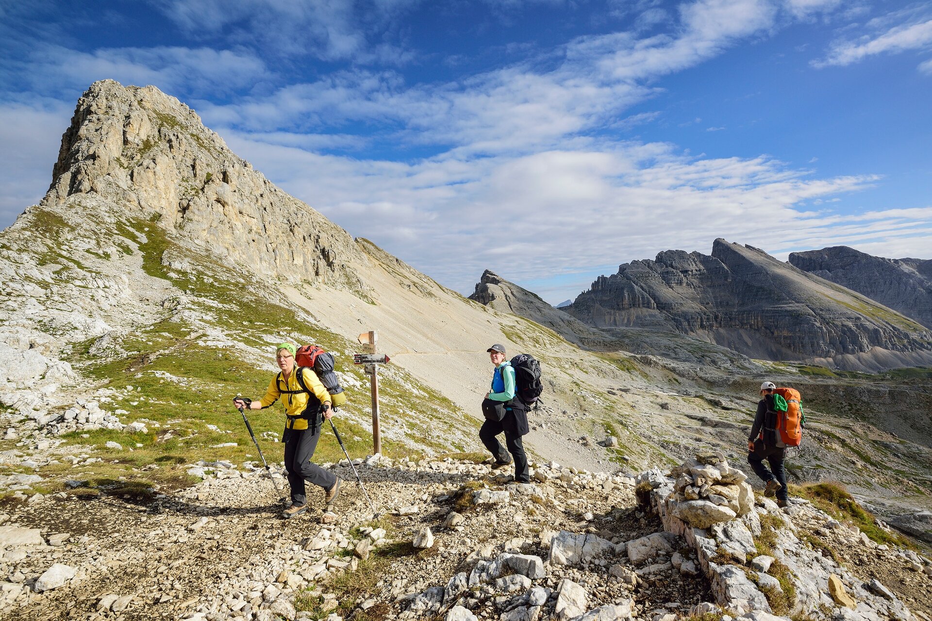 Wanderschuhe, Regenjacke, Wanderstöcke, Wasser, Snacks und Sonnencreme.