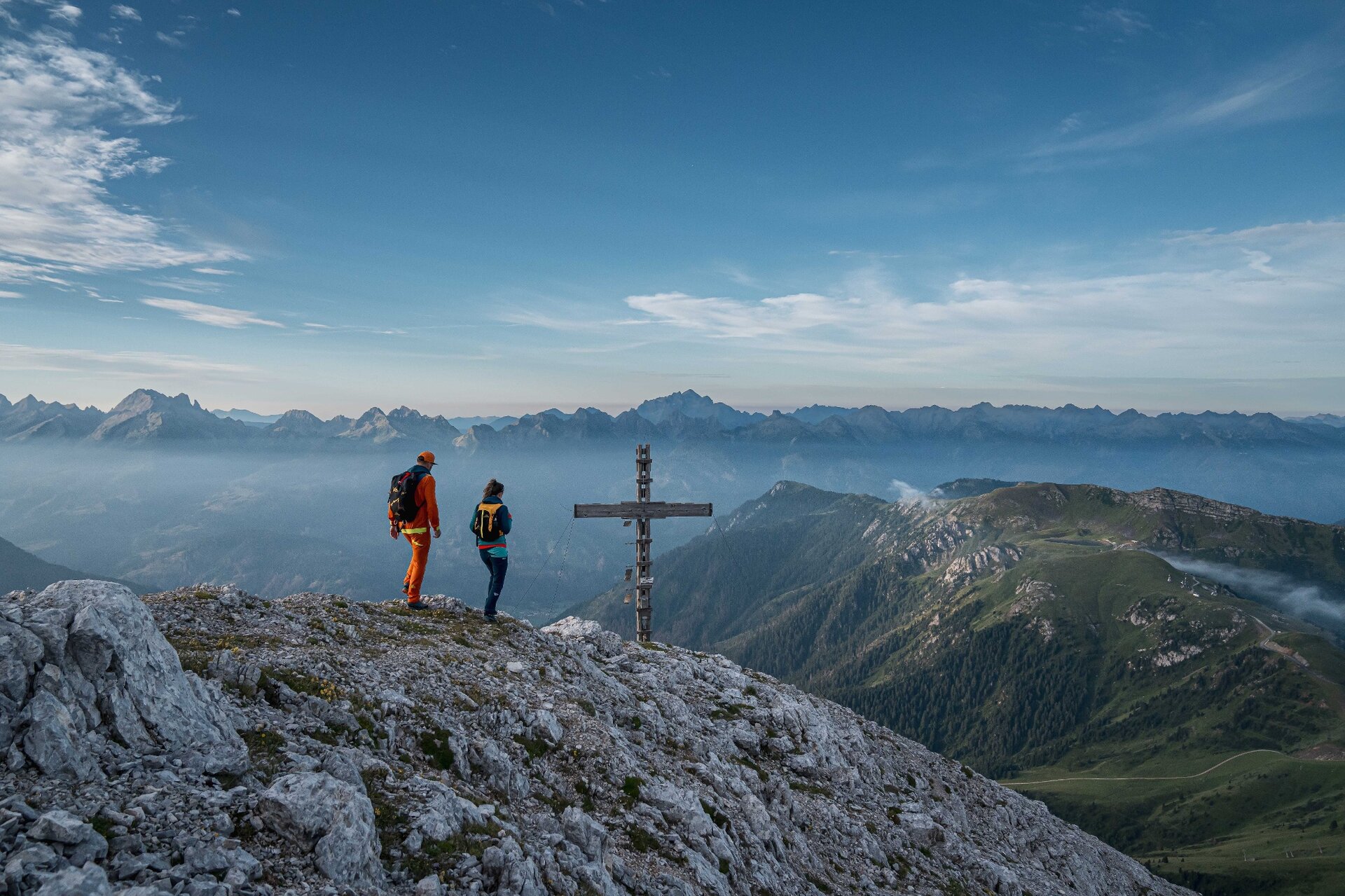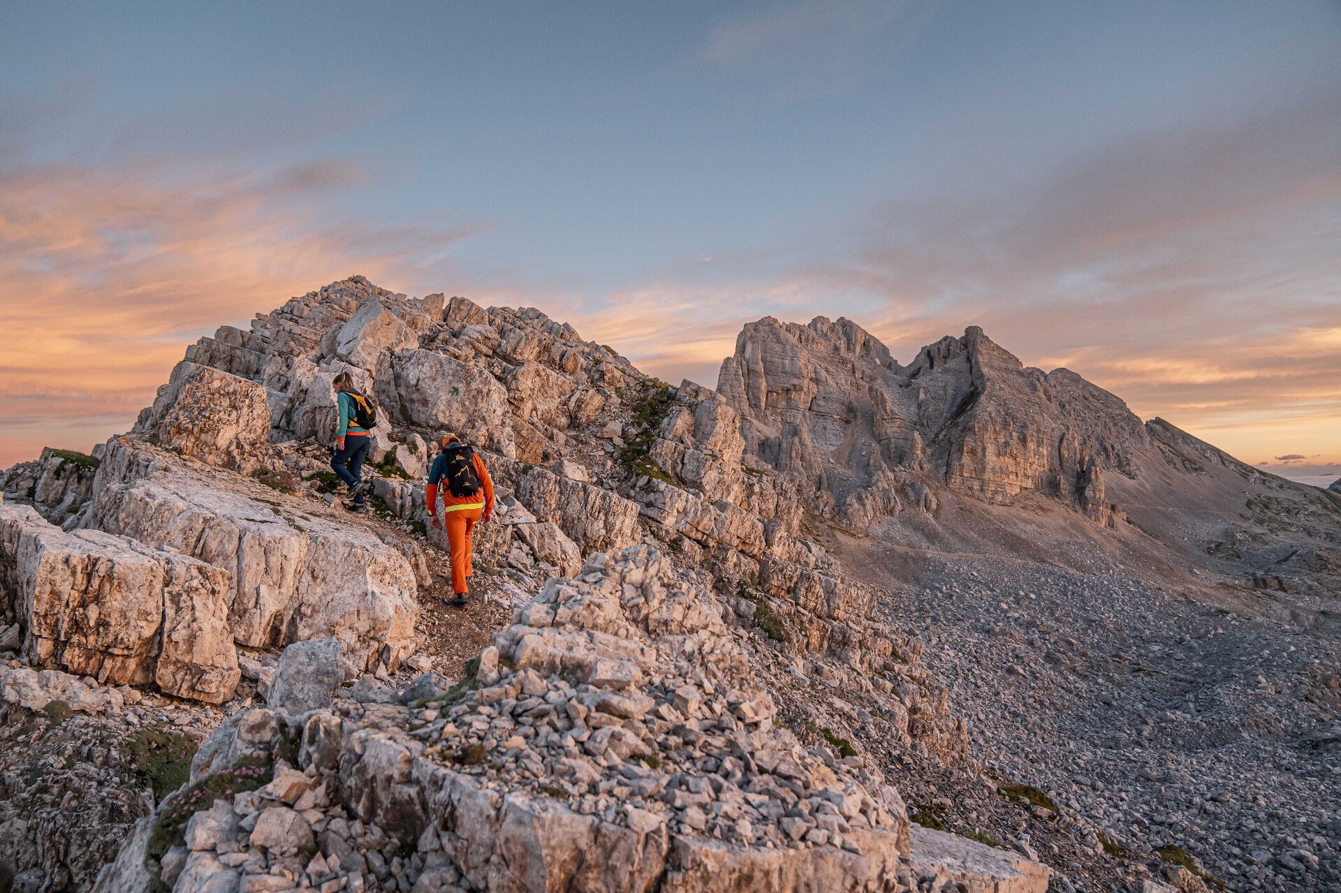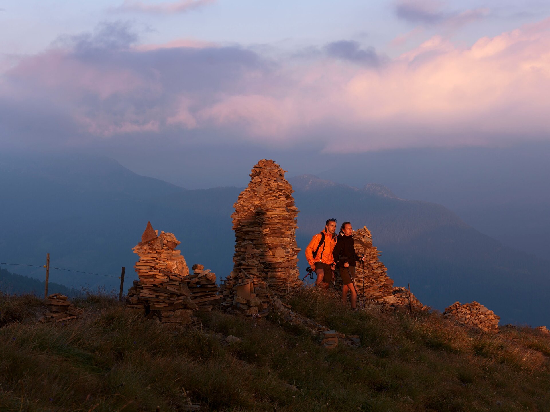 Wanderschuhe, Regenjacke, Wanderstöcke, Wasser, Snacks und Sonnencreme.
