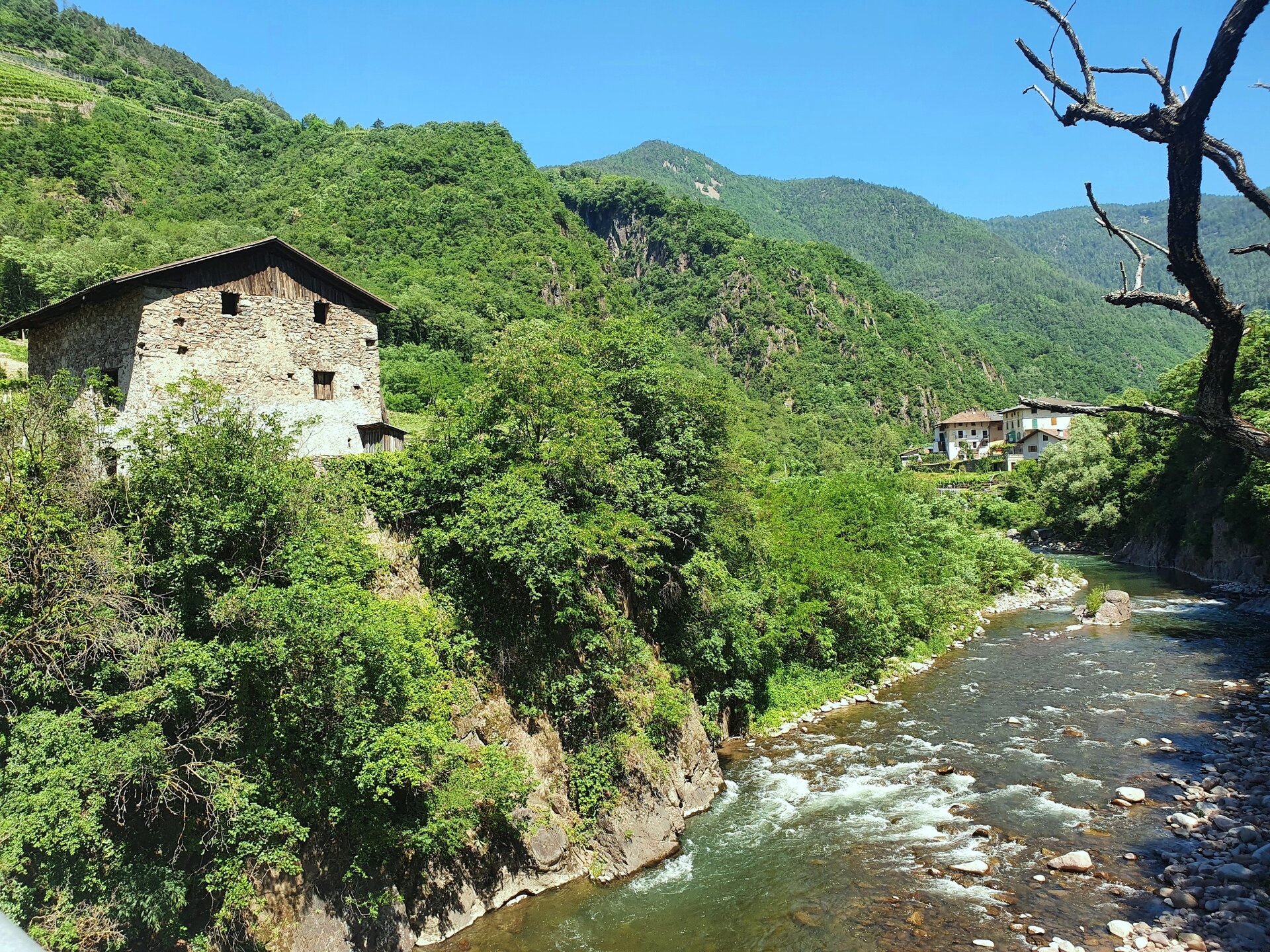 Ein Weg zum Wesenskern des Cembratals: die Dörfer an den steilen Hängen, die terrassierten Weinberge, der Avisio, die Burg von Segonzano