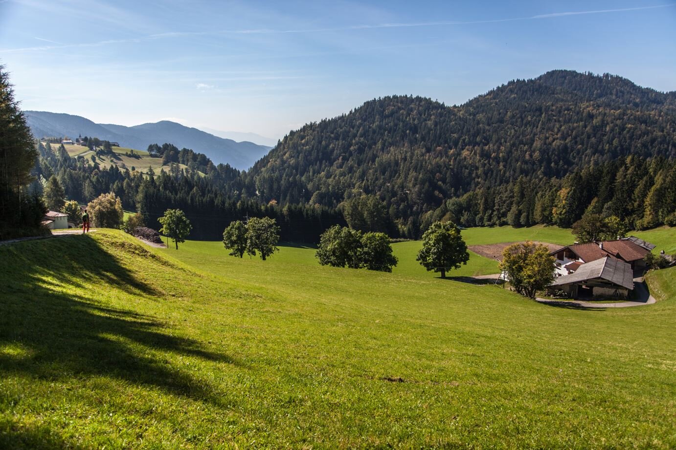 Behind the alpine pasture, take path no. 9 towards Hackelboden – Casignano, which passes below the summit of Monte Corno (1,781 m). Crossing the Casignano Forest, first descend on a road and then on a zig-zag path (no. 9), crossing the dirt road multiple times. Once a flat road is reached, turn left, and after 100 meters, reach the Hackelboden hut. Behind the hut, the path (no. 9) descends to the forest road where it turns left. You reach a fork and, following the road that climbs sharply to the left, head towards Cauria pass. From the pass, always on the road (no. 4), descend to the small village of Cauria. Just before the village, on the right, take the path (no. 2-7-8) until you reach the Provincial road. Just beyond the clearing, on the right, take the forest road signposted Laghetti (path no. 7). Descend and enter a deep small valley. Follow the signs for “Laghetti” until the road, on an asphalt section past Loc. Le Seghe, joins a hairpin bend at the height of a stone bridge (Roman bridge). Take the Dürer Trail (Dürerweg) on the left, which climbs from the Kloesterle di Laghetti and finally reaches Pochi di Salorno.