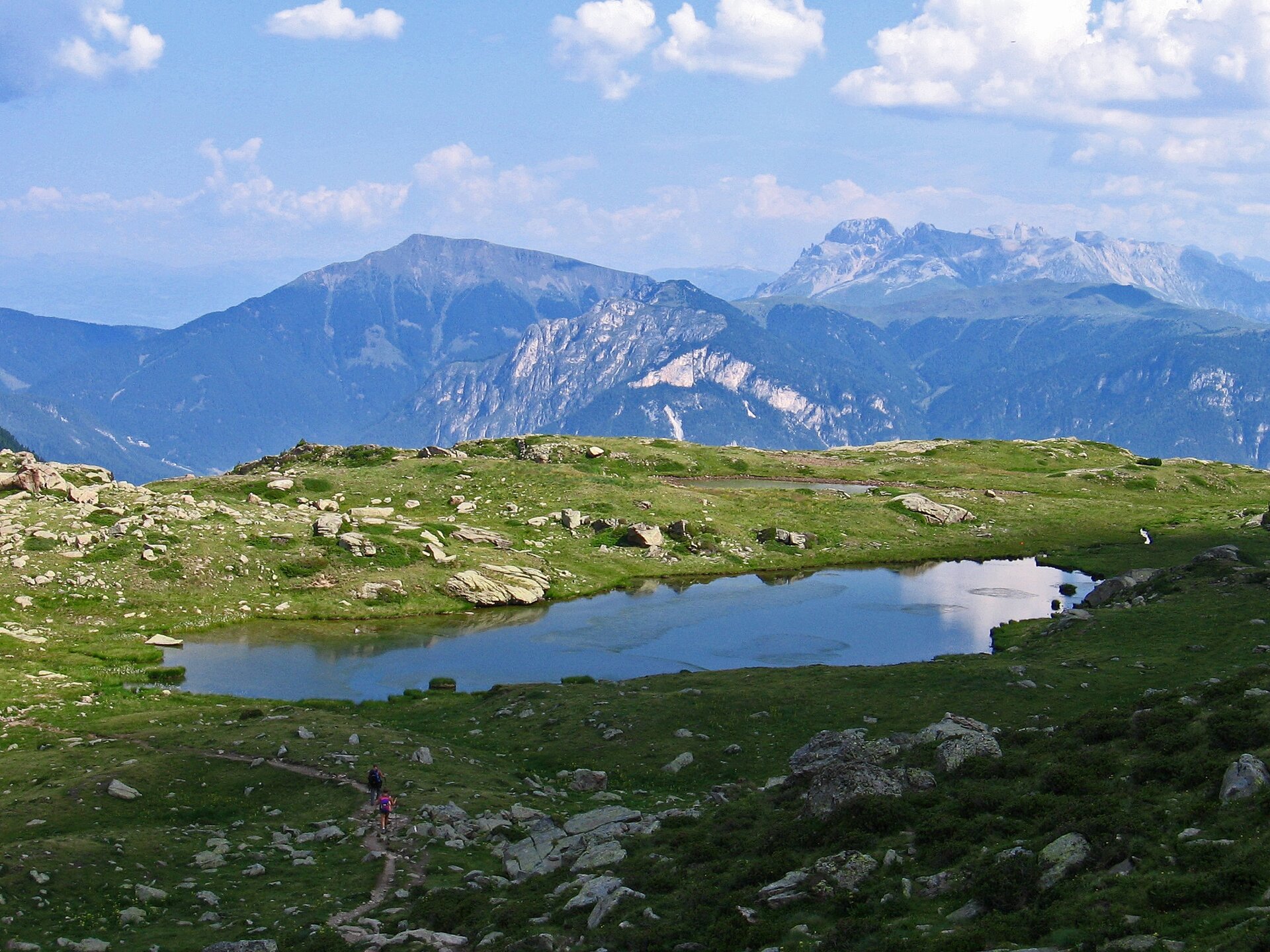 Follow trail No 3 and directions for Laghi di Bombasel. The route first descends along a wide road which in winter is a ski slope. Once in Forcella Bombasel, the only demanding stretch of the hike begins, with some stairs that helps you to descend a steep part. Continue on the evident track in constant ascent until you reach the lakes.