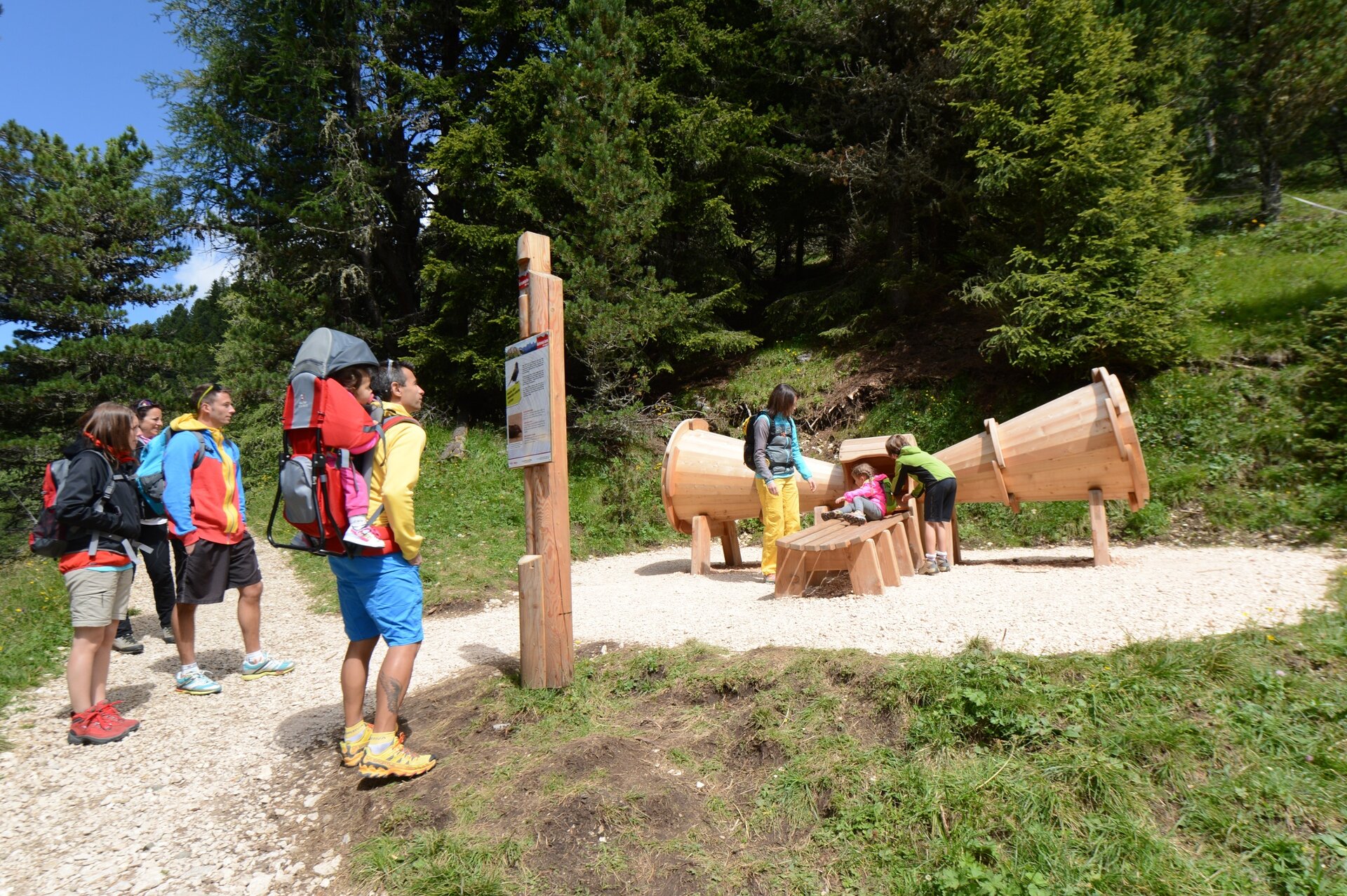 You can regenerate yourself, enjoying the spectacular views that will open to your eyes! Starting from the upper station of the Latemar chairlift, the route leads directly under the rocky walls of the Latemar - Dolomites, a UNESCO World Heritage Site. After the first uphill stretch to Passo Feudo and the next kilometer leading to 2,333 meters, the route is not particularly demanding. Along the way there are information tables on flora and fauna, binoculars pointed at the Dolomite spiers, curiosities about the mythological creatures that inhabit Latemar.