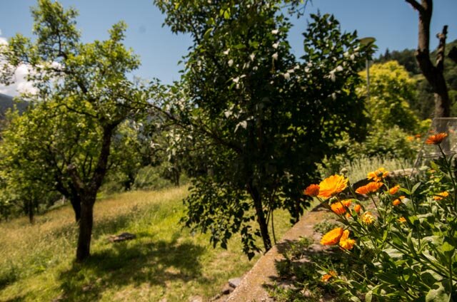 A panoramic and suggestive stretch runs along the Avisio stream until reaching Maso Ponte: this place in the last century was inhabited and surrounded by gardens, fields, and vineyards. Today only ruins remain near an ancient crossing that linked Capriana and Valfloriana, swept away by the 1966 flood. Here the Avisio stream shows its full magnificence, thanks to a still intact wild nature. We follow it for about 1 km before taking the climb to Maso Rover, a beautiful hamlet of Capriana. At Rover, the landscape tells us the story of this place: steep terraced fields, the small church built by the workers who built the Stramentizzo dam, houses abandoned following the 1966 flood. Here, a small farm, FiordaLisa, has resumed cultivation of the terraces with vegetables, medicinal plants, and ancient local bean varieties.