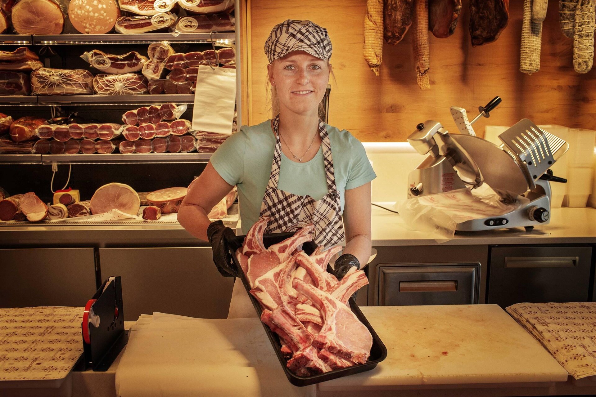 Das qualitativ hochwertige Fleisch, die Wurstwaren und Aufschnitte werden im Hofladen angeboten.