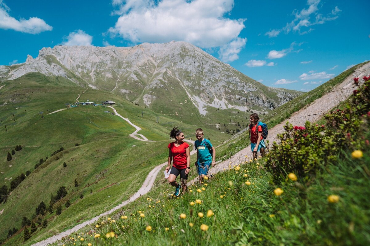 Per raggiungere il percorso Geotrail Dos Capèl, prendi la funivia per Gardonè e poi la seggiovia per Passo Feudo (2.200 m).
