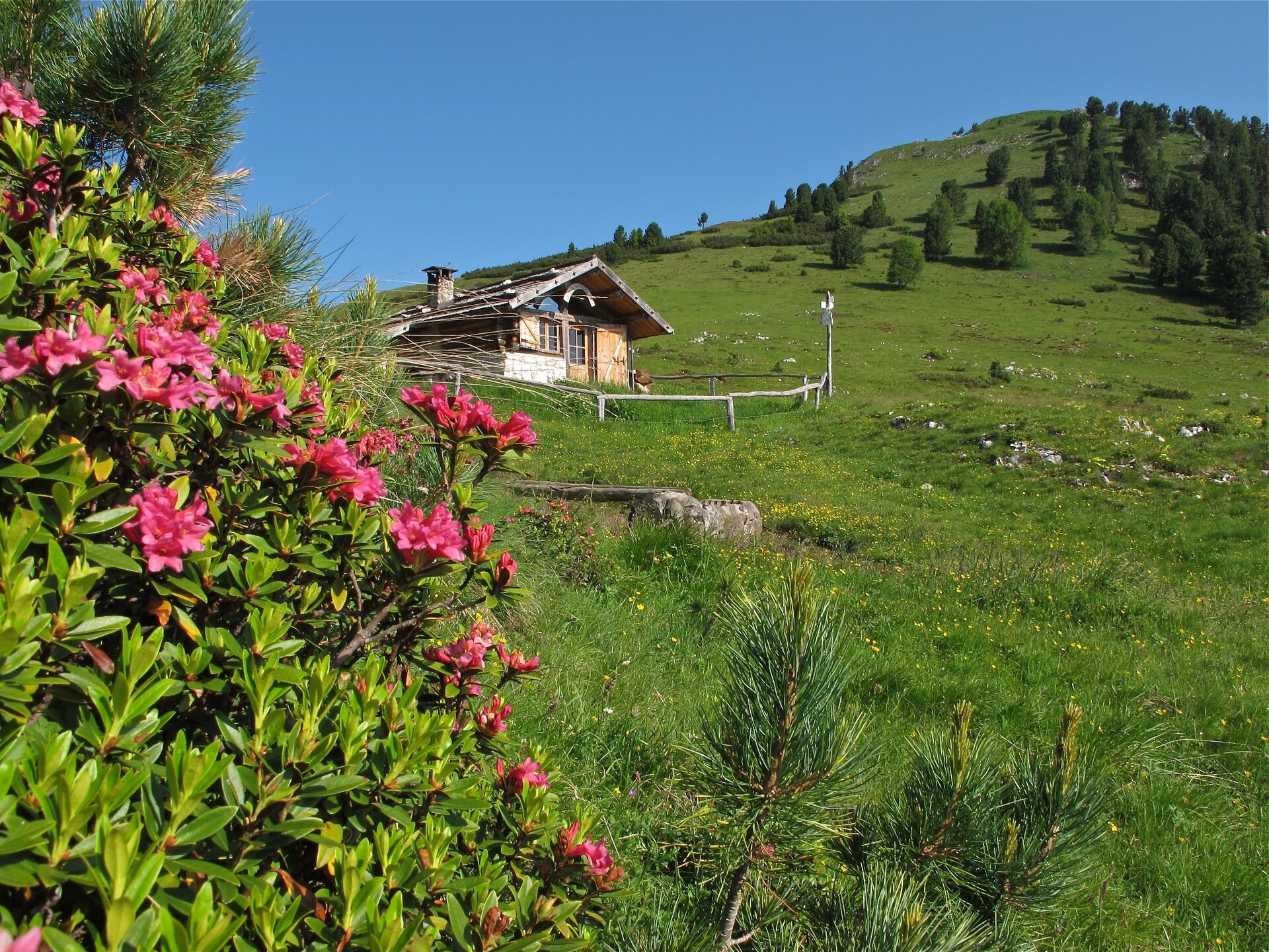 L’escursione conduce tra pascoli, baite e sentieri in mezzo ai pini mughi fino alla cima sud dei Cornacci o Cornon, sulla quale domina la grande croce visibile anche dal fondovalle. Un lungo costone scende verso Tesero offrendo un panorama che toglie letteralmente il fiato. Una sosta silenziosa sulla panchina ai piedi della croce riempirà occhi e cuore di beatitudine. La bellissima piattaforma con foto panoramica fornisce informazioni sulle montagne circostanti con le loro vette vicine e lontane. Le pendici del Cornon custodiscono da oltre tre secoli le inconfondibili “scritte dei pastori” vergate con ocra rossa, localmente chiamata “ból”. Tutta la zona ospita una ricca varietà di flora e fauna. E’ possibile incontrare camosci e avvistare in cielo l’aquila reale.