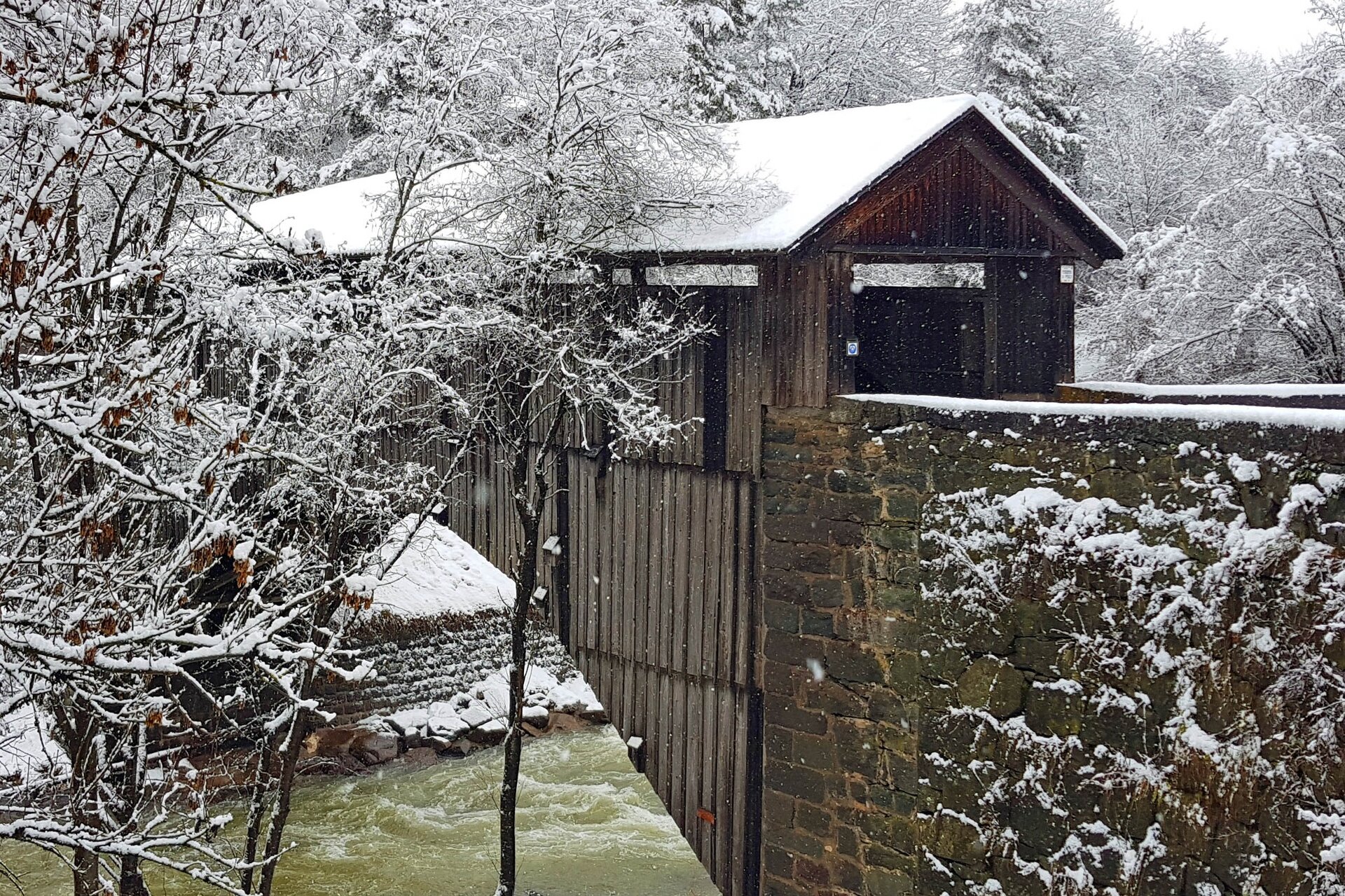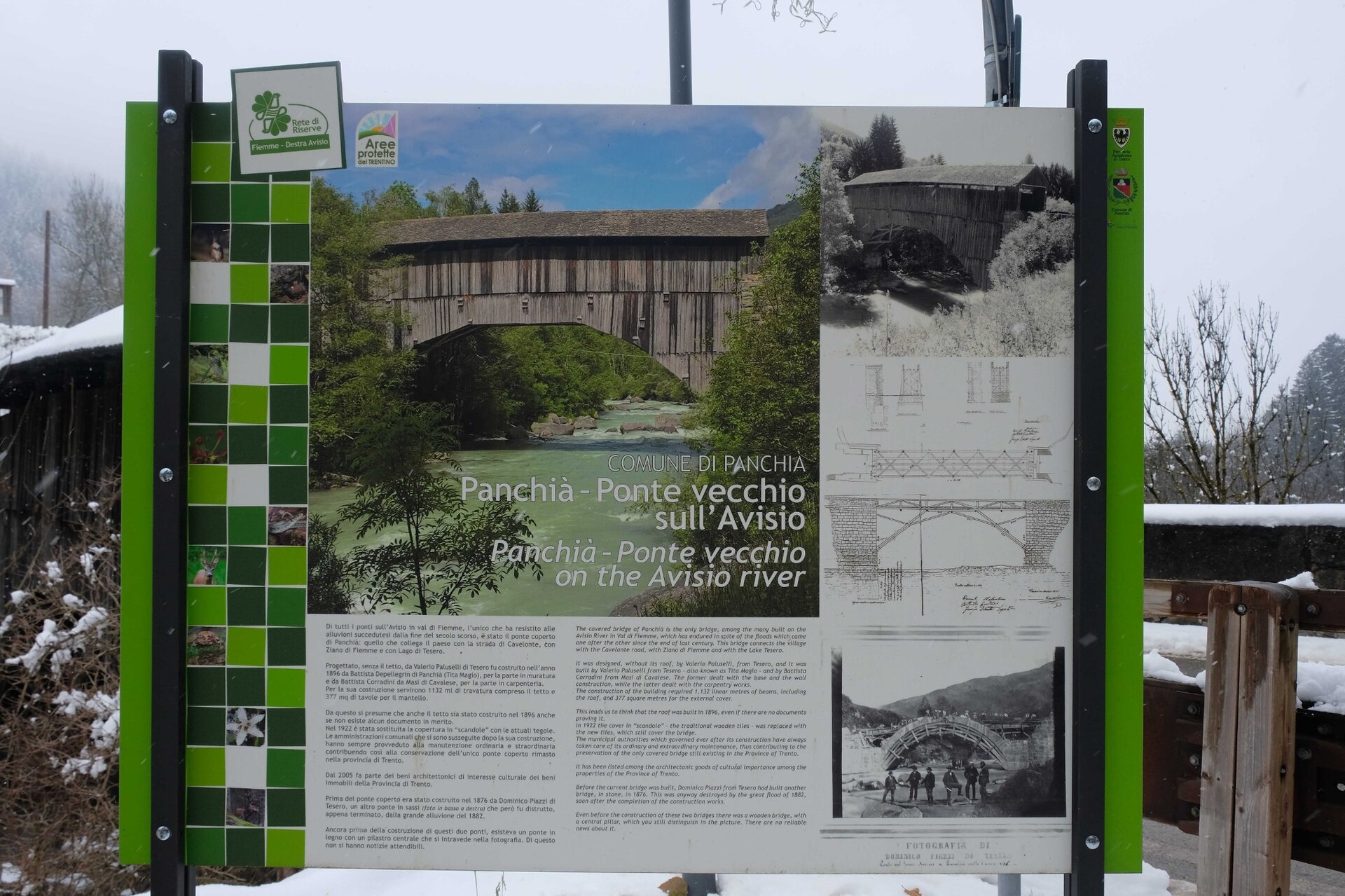 Da Piazza Chiesa prendi Via Cavelonte in discesa verso il Ponte Coperto, l'unico ponte coperto di questo tipo in tutto il Trentino. Prima del ponte, svolta a sinistra su una larga pista sterrata che porta ai circuiti MTB e al campo da calcio, e continua lungo la riva del Torrente Avisio fino al borgo di Ziano. Svolta a sinistra e attraversa il borgo fino alla chiesa, attraversando la SS48. Un nuovo sentiero segue la linea della strada e continua a sinistra, conducendo al percorso Pontologia, illuminato la sera, e da lì ritorna a Panchià.