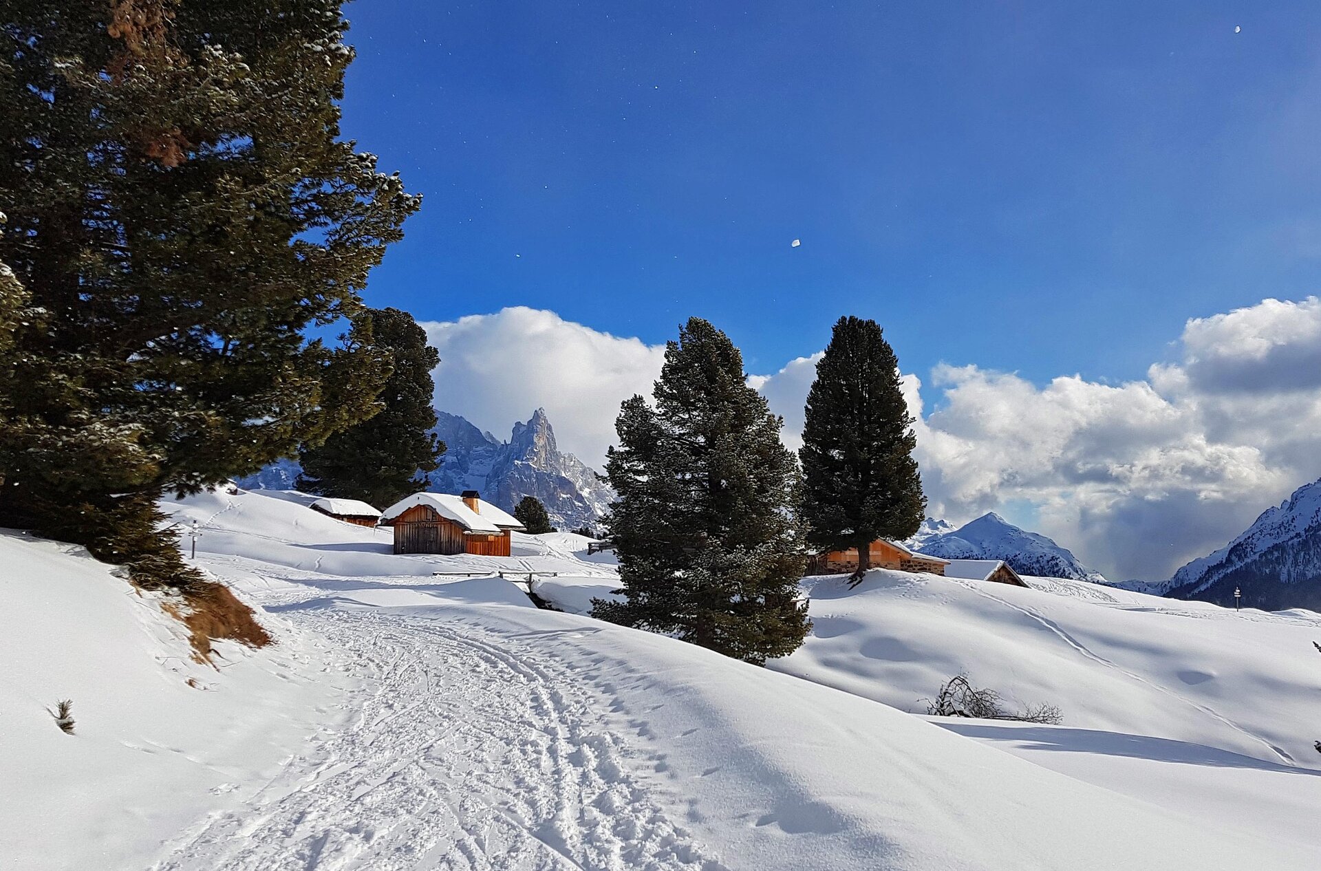 L’itinerario è un po’ lungo, ma privo di dislivello grazie all’utilizzo della cabinovia che porta quasi a 2.000 metri. La strada forestale che porta a Malga Bocche (chiusa in inverno) passa per località Canvere, in un susseguirsi di scenari mozzafiato con bianche distese di neve, grandi alberi di cirmoli che puntano al cielo, baite in sasso e legno. In lontananza sempre loro, le montagne: da un lato la lunga Catena del Lagorai, dall’altra le Pale di San Martino in tutto il loro splendore. E’ una camminata da percorrere con lentezza, in silenzio, in reverenziale rispetto della potente bellezza della natura che ci circonda.