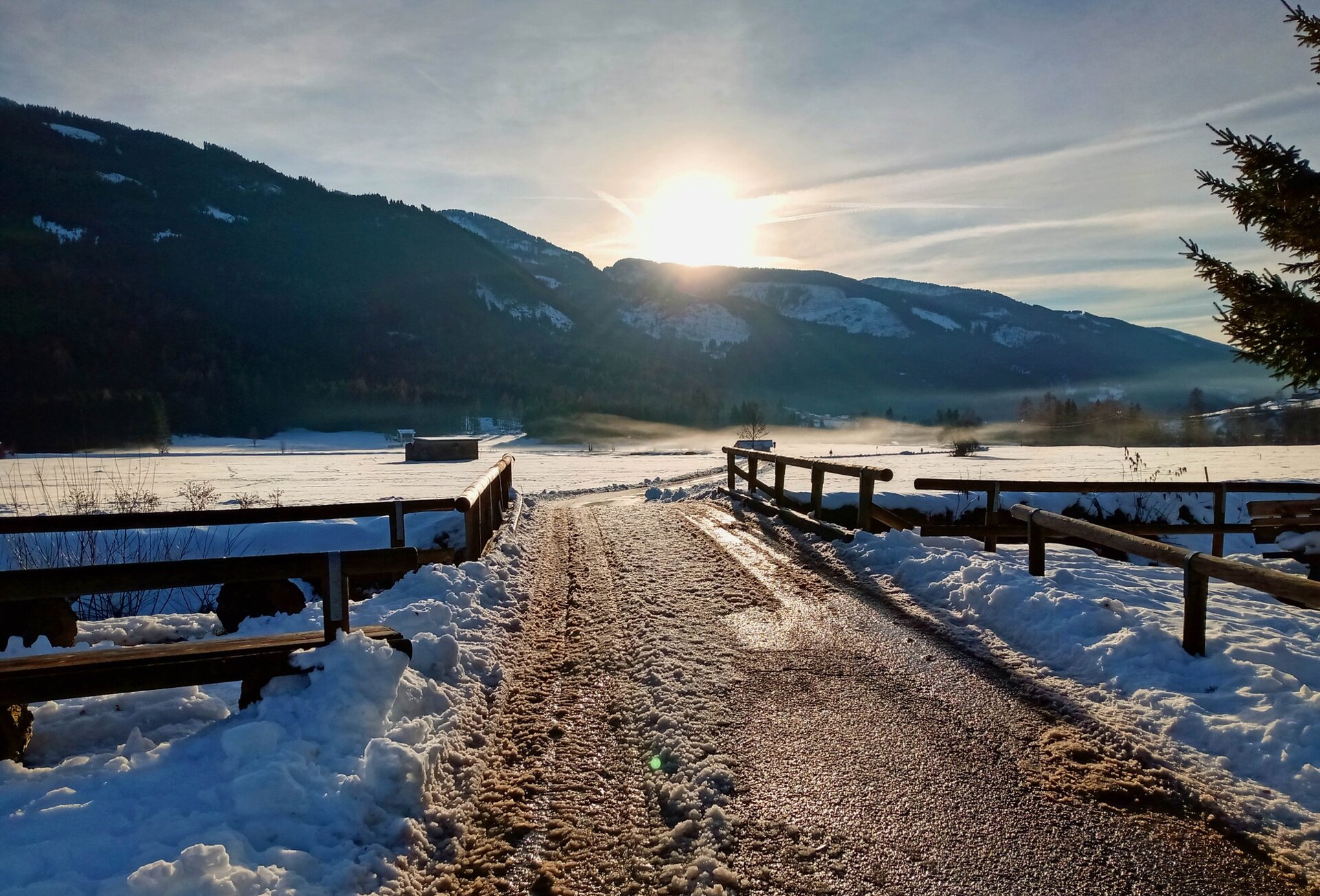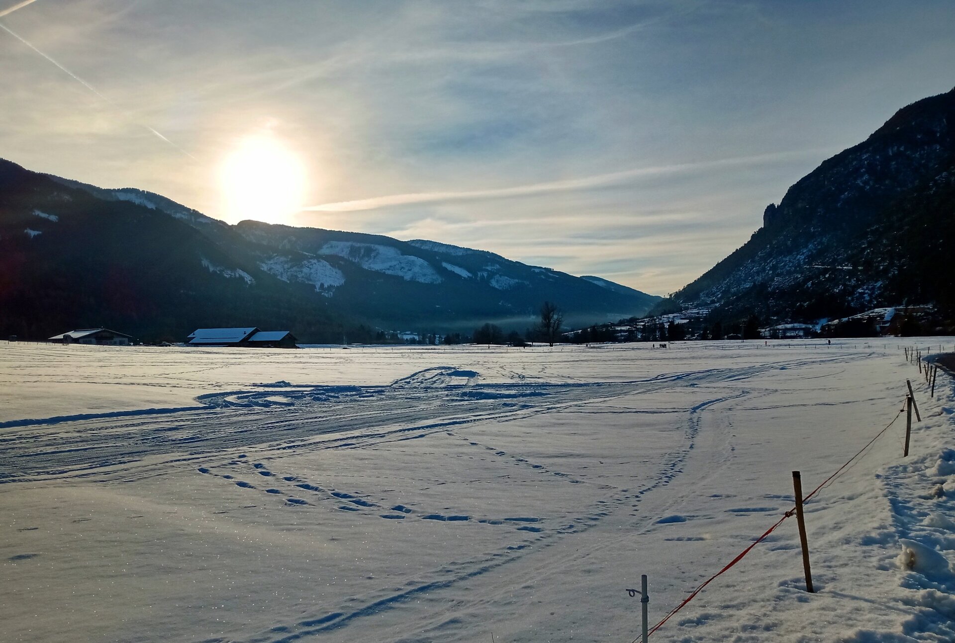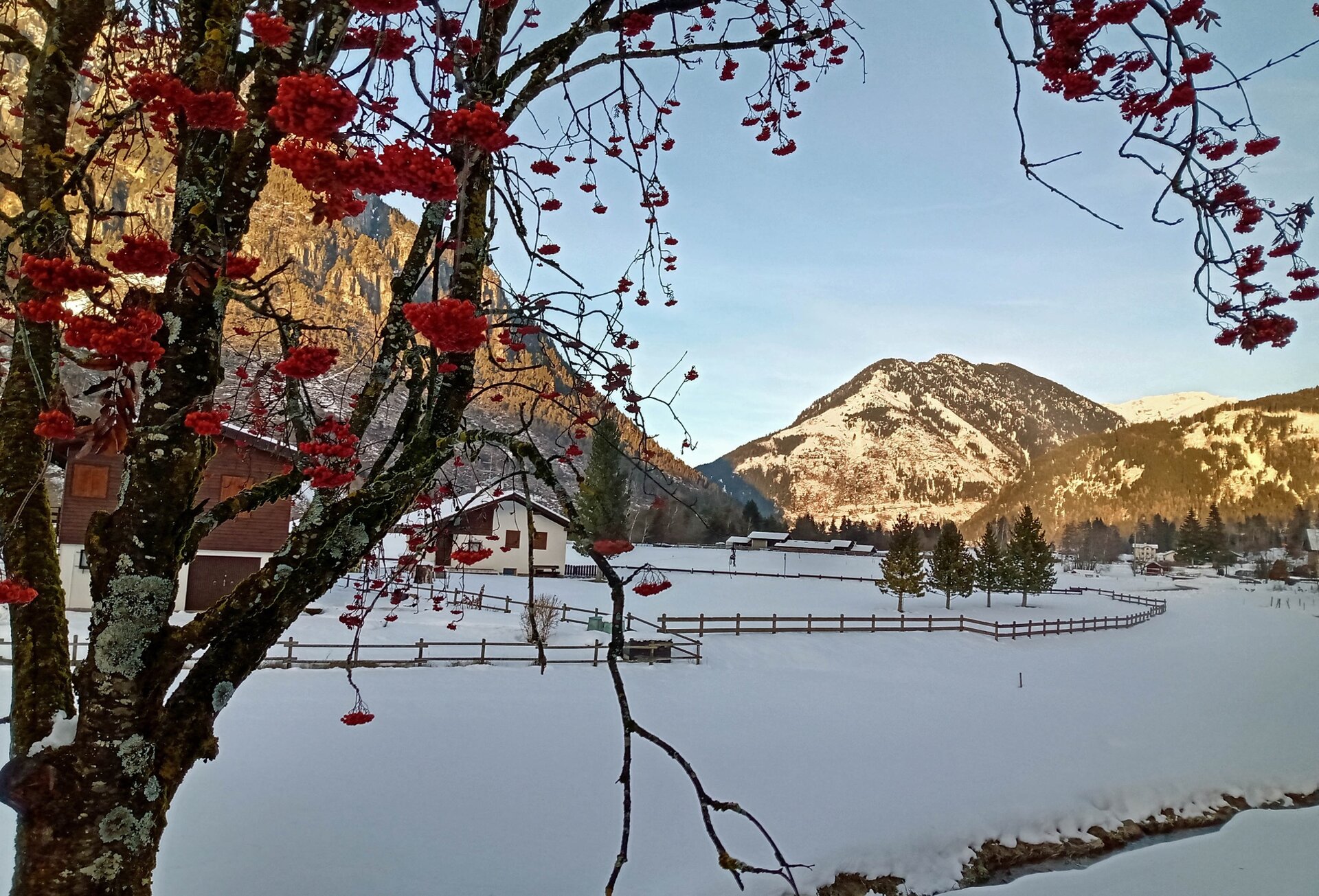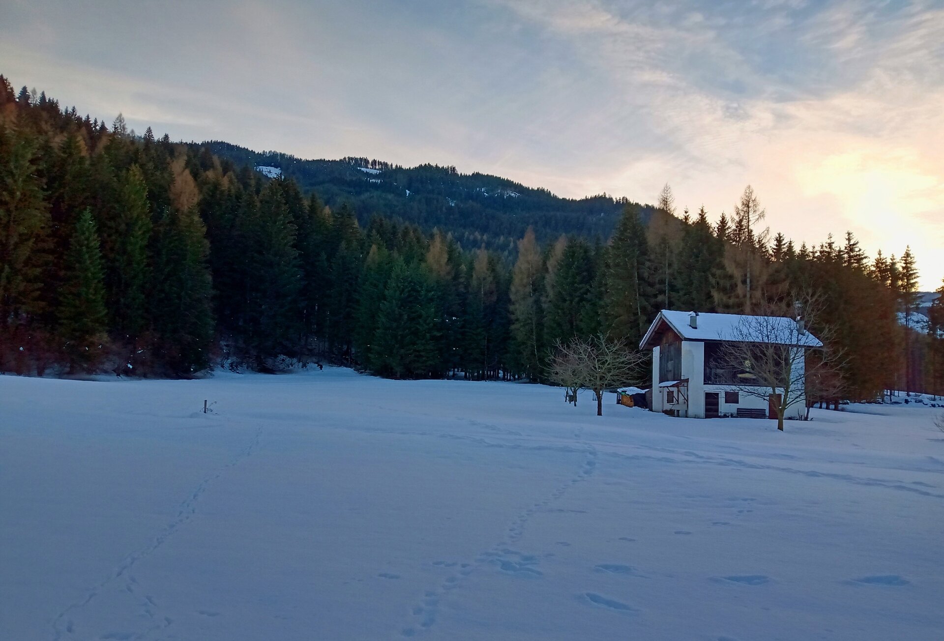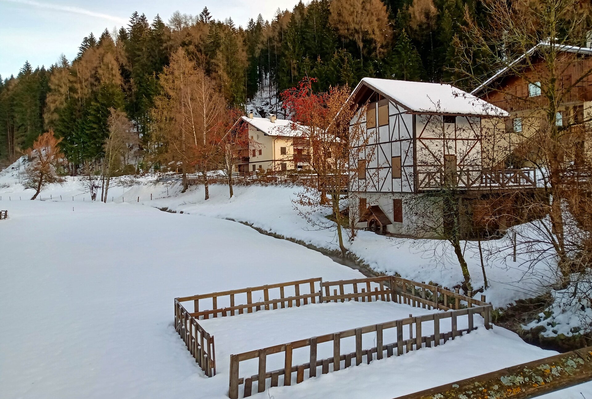 L’itinerario si snoda attraverso ampi prati innevati e pieni di sole, dove spesso pascolano placidamente mucche pezzate rosse mentre biondi cavalli Haflinger galoppano in libertà. Per un tratto la passeggiata è affiancata dalla pista della Marcialonga, la nota competizione internazionale di sci di fondo, che percorre il fondovalle di Fiemme e Fassa lungo il torrente Avisio: potrete incrociare principianti ed abili fondisti che si dilettano o si allenano, scivolando sul tracciato e perché no, farvi venire voglia di provare anche voi l’emozione degli sci stretti.