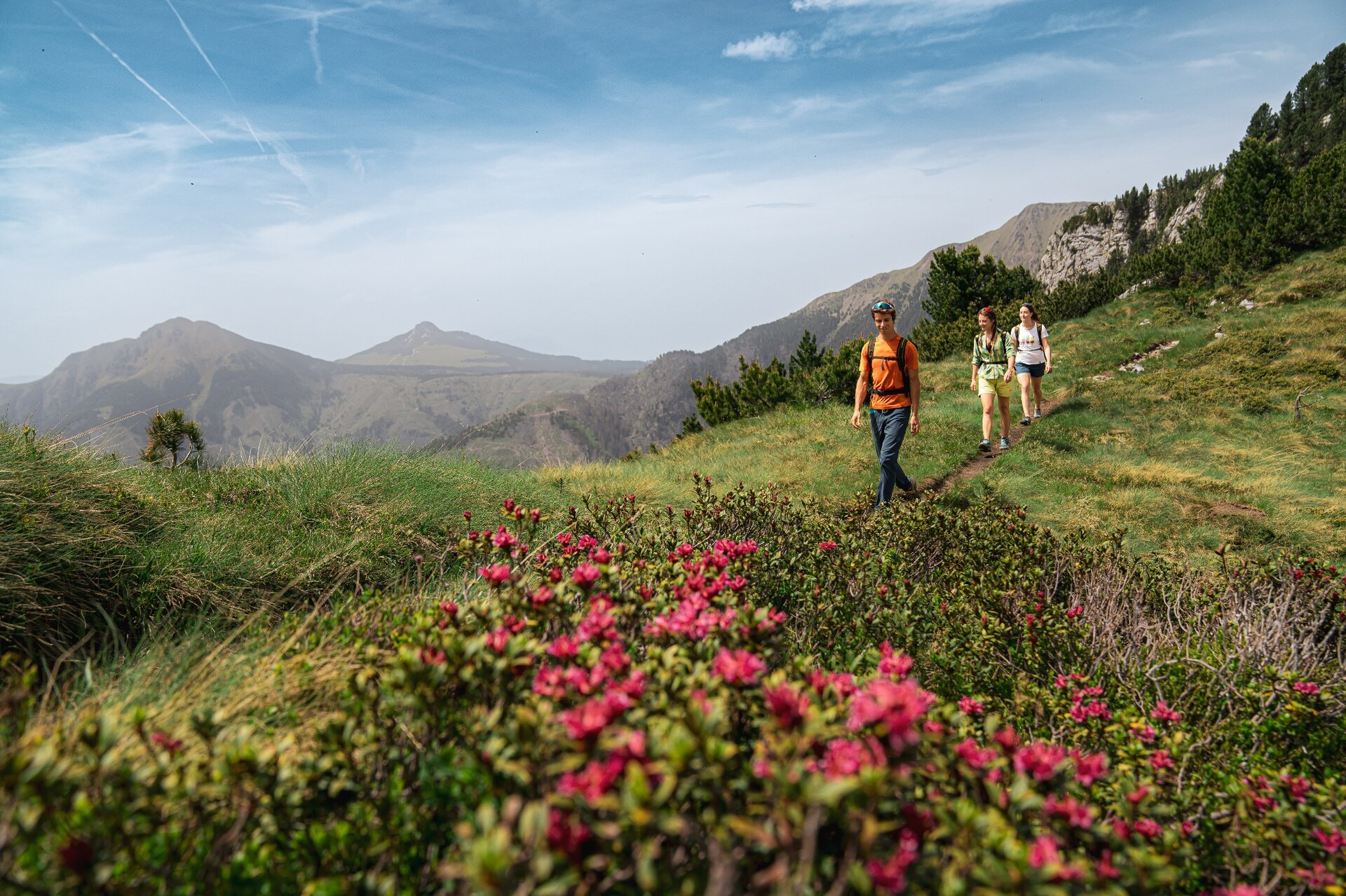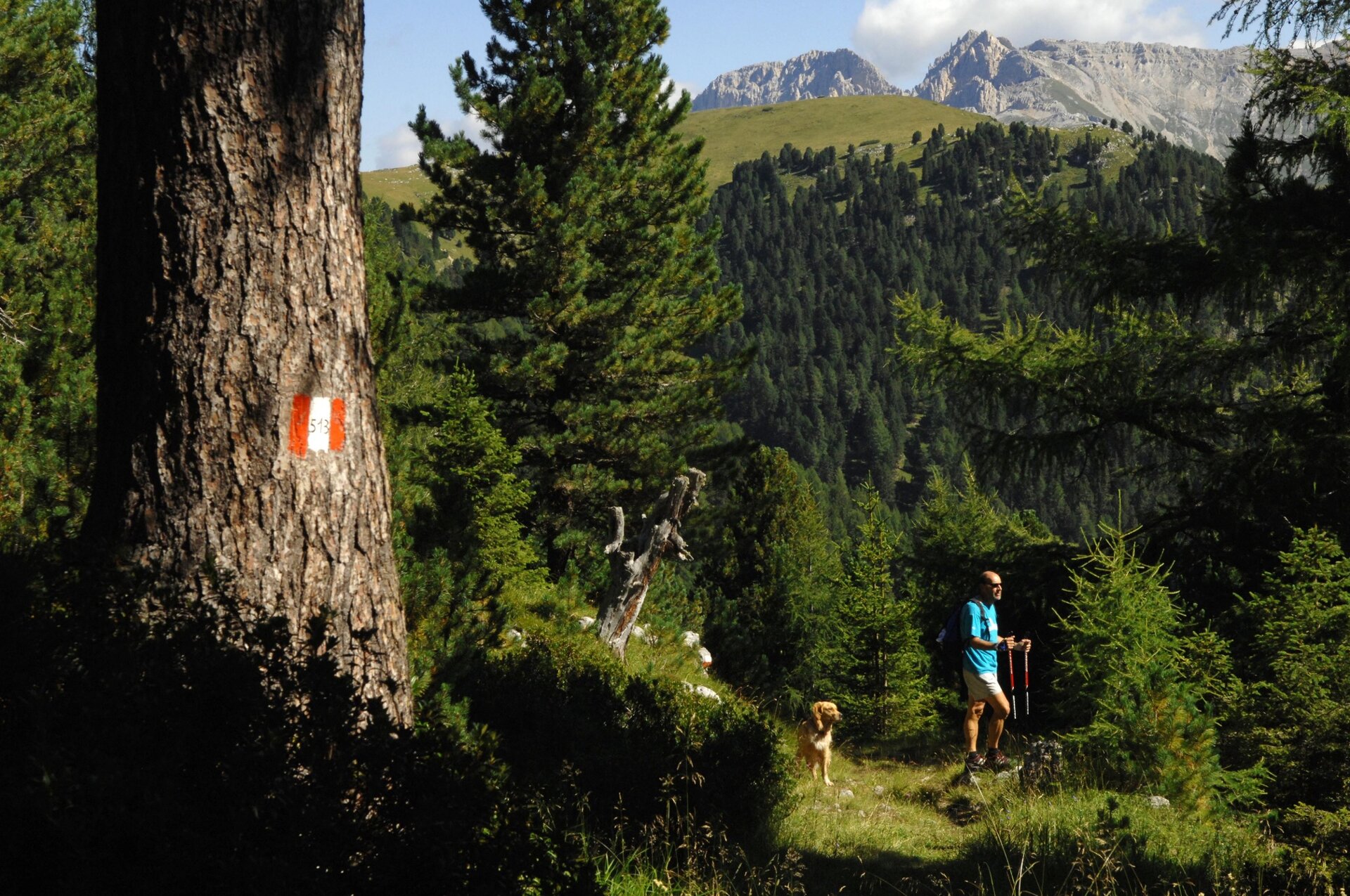 L'escursione conduce attraverso pascoli e baite fino alla cima sud di Cornacci o Cornon, dominata dalla grande croce visibile anche dal fondo valle. Una lunga cresta scende verso Tesero offrendo un panorama che toglie letteralmente il respiro. Una pausa silenziosa sulla panchina ai piedi della croce riempirà i tuoi occhi e il cuore di felicità. La bella foto panoramica su una piattaforma in acciaio fornisce informazioni sulle montagne circostanti con le loro vette vicine e lontane. Da oltre tre secoli i pendii del Cornon conservano gli inequivocabili "scritti dei pastori" dipinti con ocra rossa, chiamata localmente "ból". L'intera zona ospita una ricca varietà di flora e fauna. È possibile incontrare camosci e avvistare l'aquila reale in cielo.