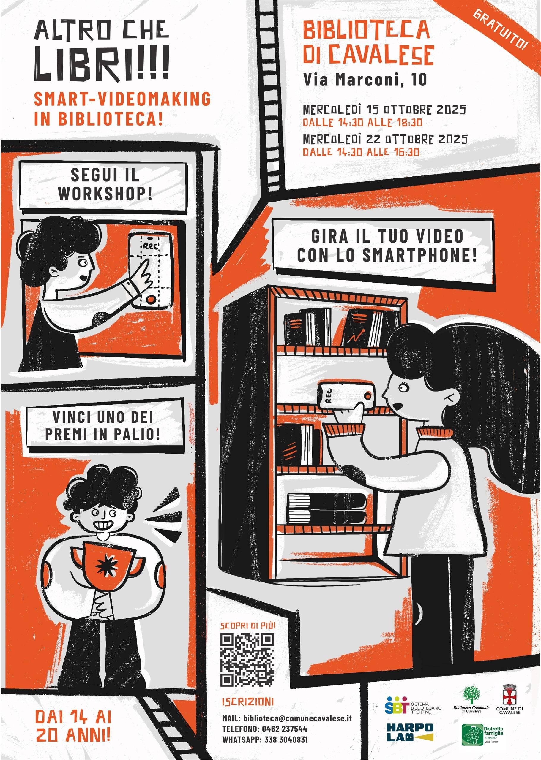Mercoledì 15 e 22 ottobre pomeriggio “Altro che libri!”, un laboratorio / concorso di Smart-videomaking in biblioteca aperto a partecipanti dai 14 ai 20 anni promosso dal Sistema Bibliotecario Trentino con HarpoLab in 37 biblioteche trentine.