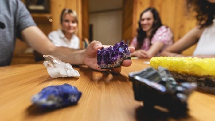 La storia della Terra e delle Dolomiti prende forma tra rocce, minerali e fossili, che si rivelano non solo alla vista ma anche attraverso il tatto e le loro caratteristiche: peso, consistenza, texture e forma.