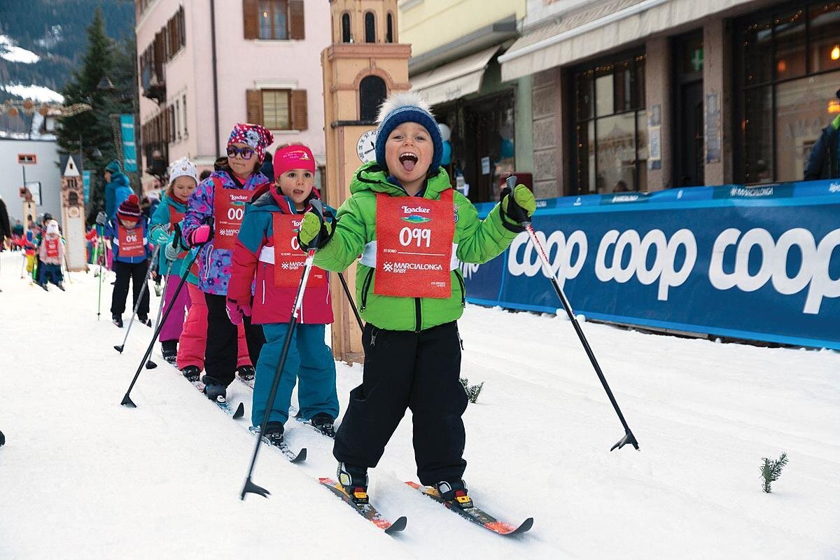 La Marcialonga Baby è una simpatica iniziativa dedicata ai bambini pù piccoli che hanno la possibilità di cimentarsi sugli sci da fondo - anche per la prima volta - lungo la strada principale del paese di Predazzo, appositamente innevata per gli eventi del sabato e la gara della domenica.