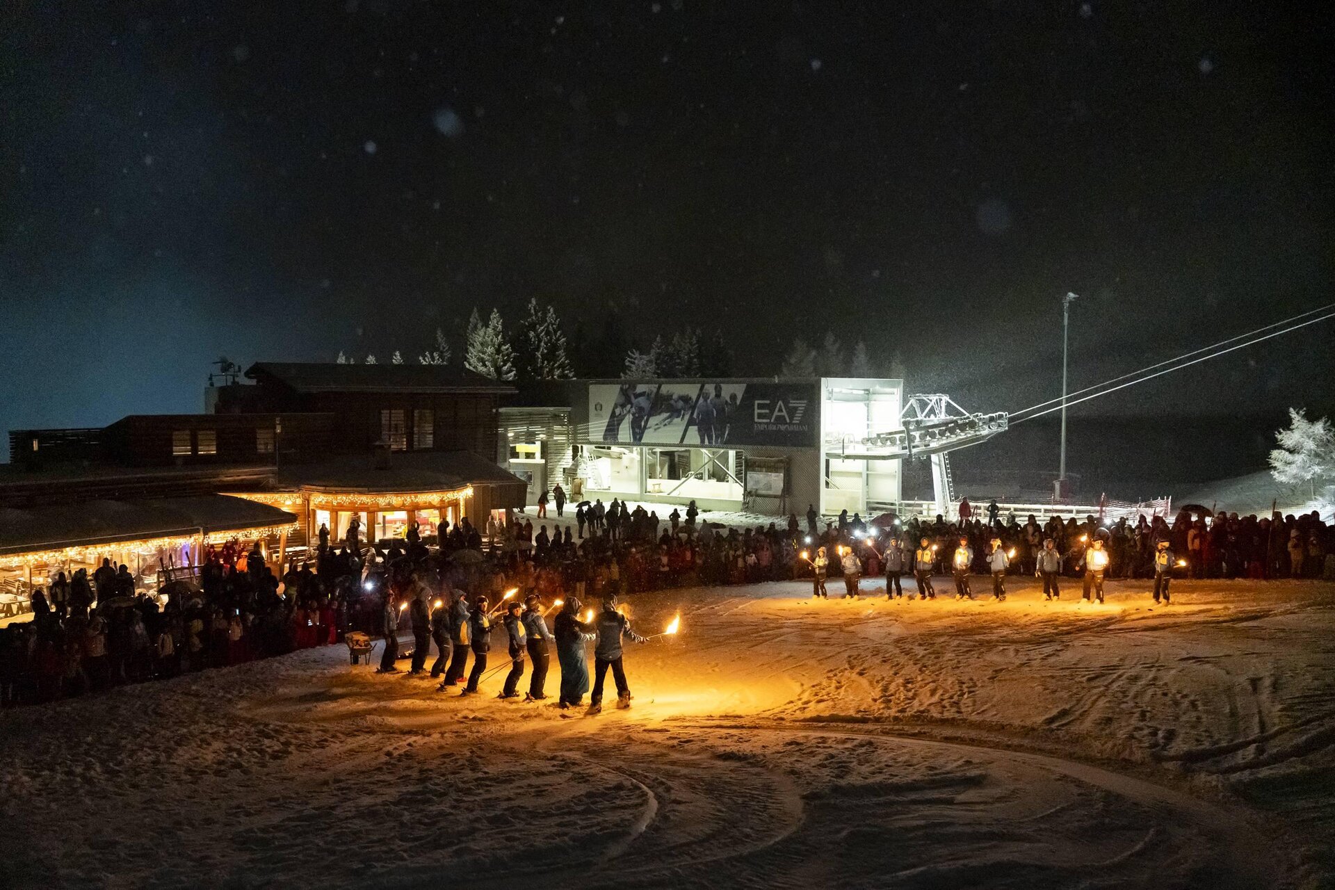 Fiaccolata dei Maestri: L’apertura suggestiva con i Maestri della Scuola Sci Cermis.