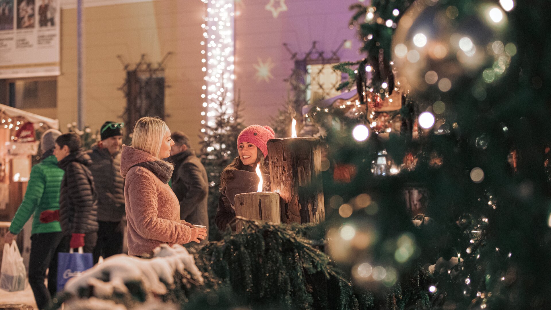 Quanto è romantico il Mercatino dopo una giornata di sci! Fra le romantiche casette di legno potrai curiosare fra pantofole di lana cotta, cose di casa dal sapore antico, spiedini caramellati, formaggi prelibati e tentazioni della tradizione, potrai riscaldarti con bevande dolci e speziate e pensare a doni speciali e unici. In Val di Fiemme il dono più prezioso è la tranquillità, il silenzio della sera, i suoni ovattati dalla neve, il calore dell'accorglienza, tutto questo e molto altro ti aspetta per una vacanza di Natale.