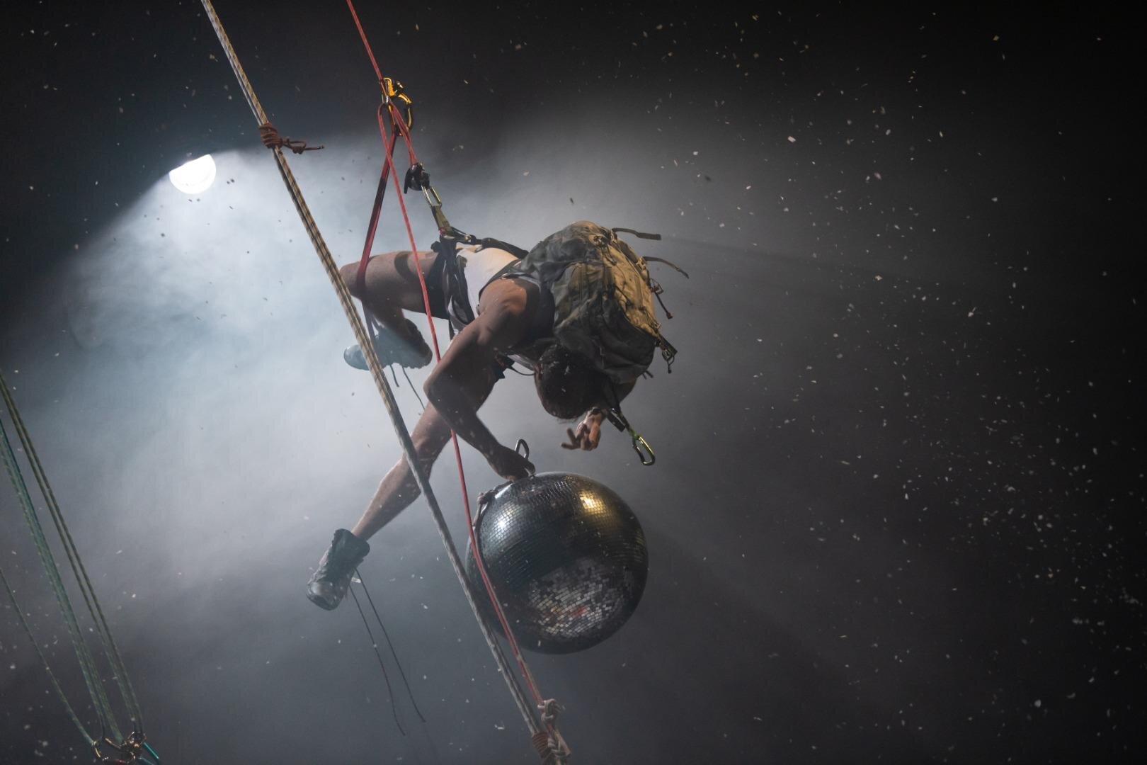 Alpinismo e arrampicata sportiva, due passioni di Piergiorgio Milano, coreografo dedicato all’interazione tra danza, circo contemporaneo e teatro, sono al centro di White Out, spettacolo visionario il cui titolo definisce, per gli alpinisti, la condizione estrema di perdita totale di visibilità e orientamento. Nell’evocazione di un paesaggio naturale sulla scena, tre performers scalatori intraprendono un viaggio iniziatico dove l’interiorità e lo spirito di sopravvivenza incontrano lo sforzo e l’acrobazia. La scalata qui diviene linguaggio artistico in una sintesi visiva ammaliante in cui lo spettatore è pienamente coinvolto: è sulla neve, in mezzo alle intemperie, vicino allo strapiombo esattamente come i protagonisti accompagnato da racconti presi dalla più celebre letteratura tematica e dal vissuto alpinistico dello stesso Milano. Con White Out l’immensità e il brivido della montagna entrano in teatro.