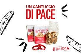 Insieme ai cantucci sarà offerto il braccialetto della campagna R1PUD1A, con cui Emergency ribadisce il ripudio della guerra scritto nell’articolo 11 della Costituzione Italiana.