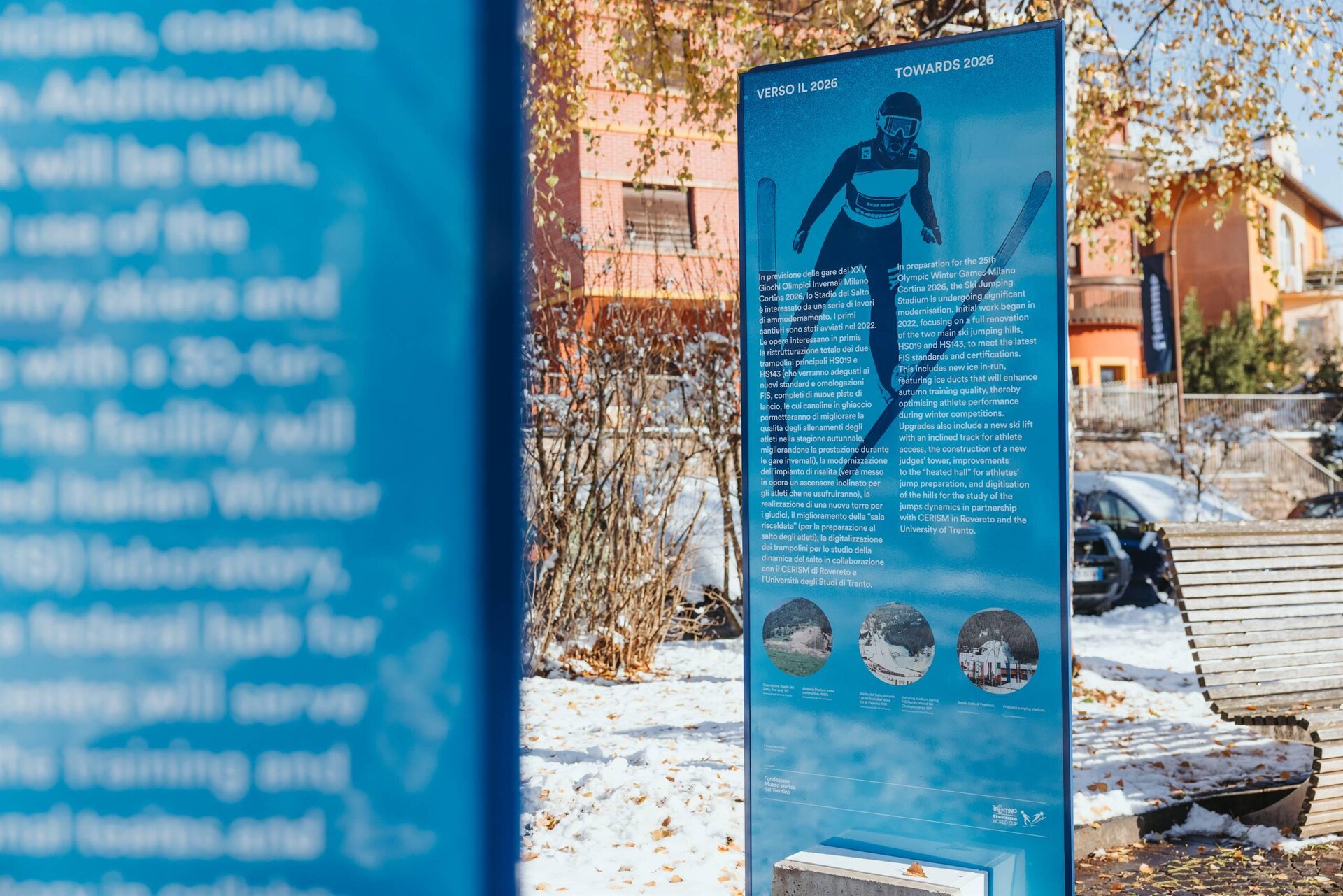 La mostra pannello grafica è all'aperto ed è sempre visitabile. I visitatori potranno lasciarsi guidare dai pannelli espositivi nel giardino per scoprire tutte le curiosità e la storia che hanno portato la Val di Fiemme a intraprendere questo importante viaggio verso le Olimpiadi e Paralimpiadi Milano Cortina 2026.