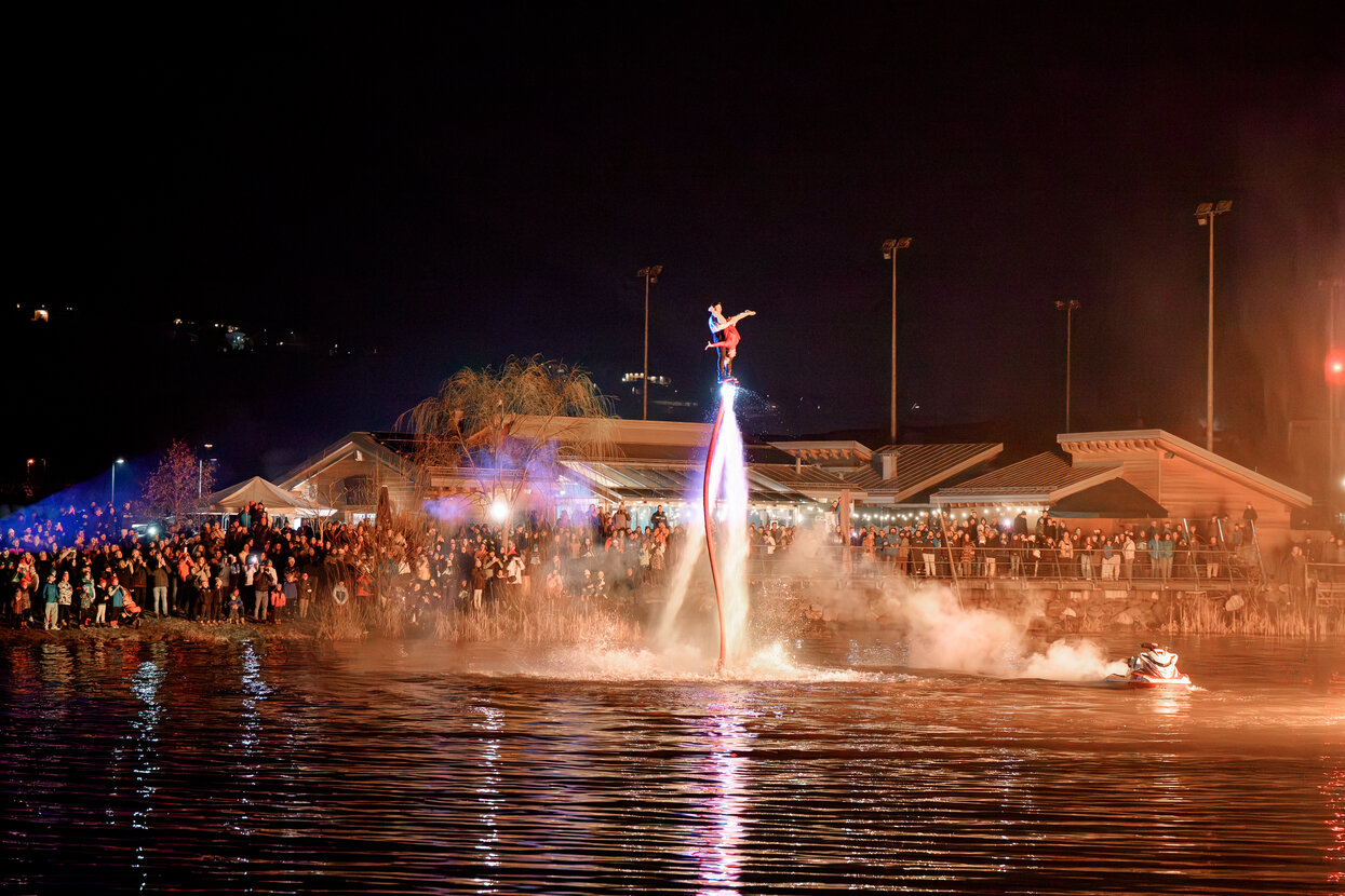 Per la Cerimonia di chiusura delle Paralimpiadi il Comune di Tesero ha voluto organizzare un grande show capace di generare lo stesso stupore dello spettacolo di droni luminosi portato in scena durante la Cerimonia di chiusura dei Giochi Olimpici invernali.
