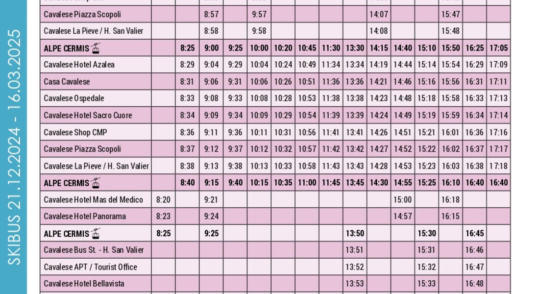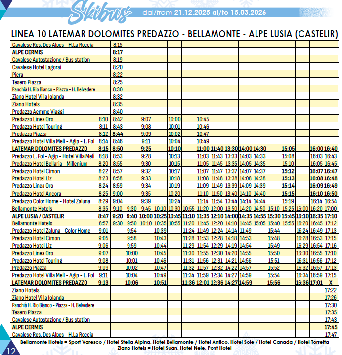 Raggiungi comodamente le piste da sci della Val di Fiemme senza lo stress di cercare un parcheggio e utilizza il servizio skibus che collega i paesi agli impianti sciistici durante tutta la stagione invernale.